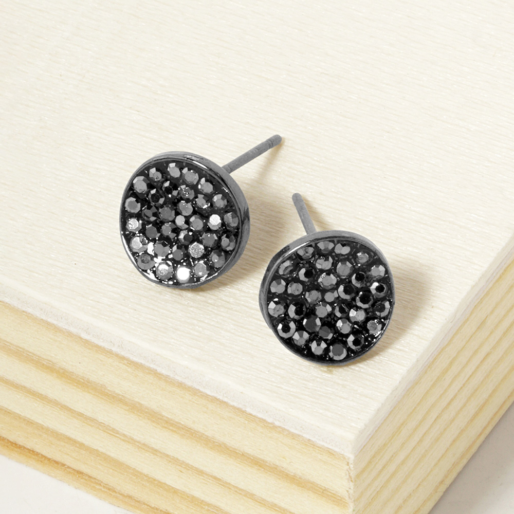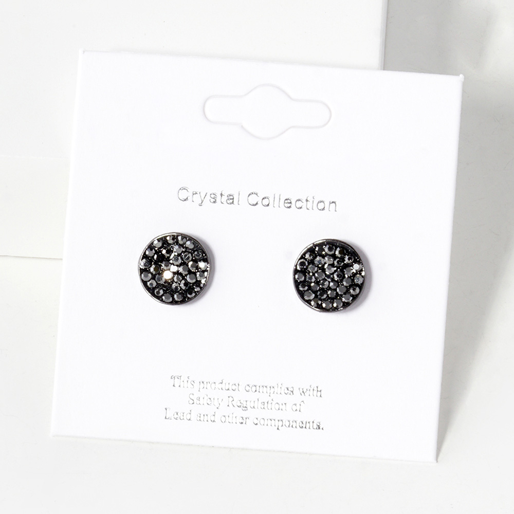 Crystal Pave Round Disc Stud Earrings