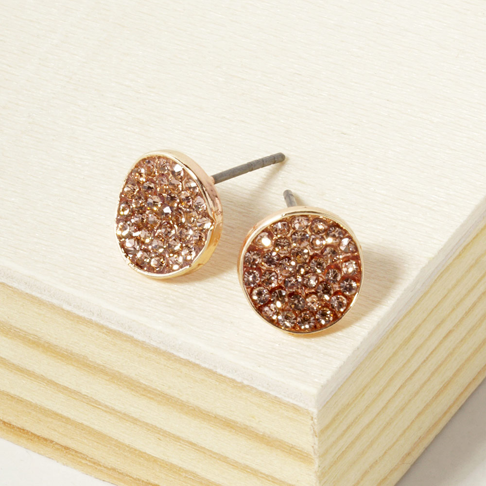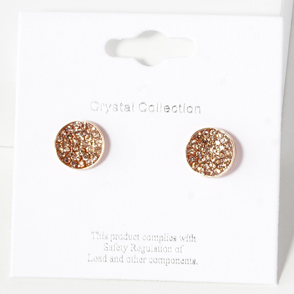 Crystal Pave Round Disc Stud Earrings