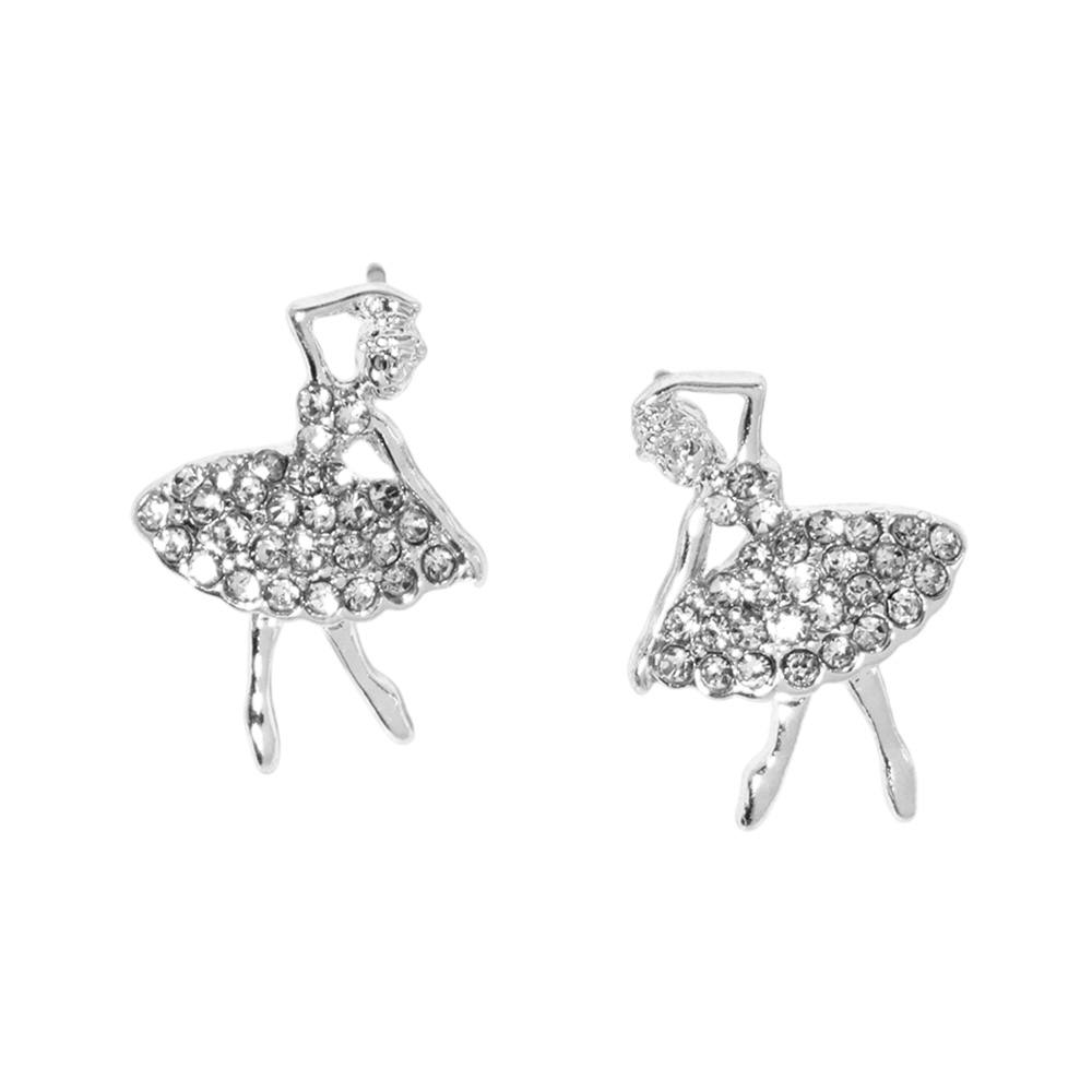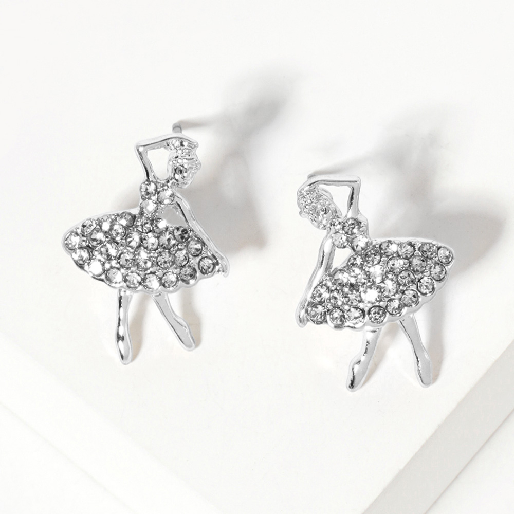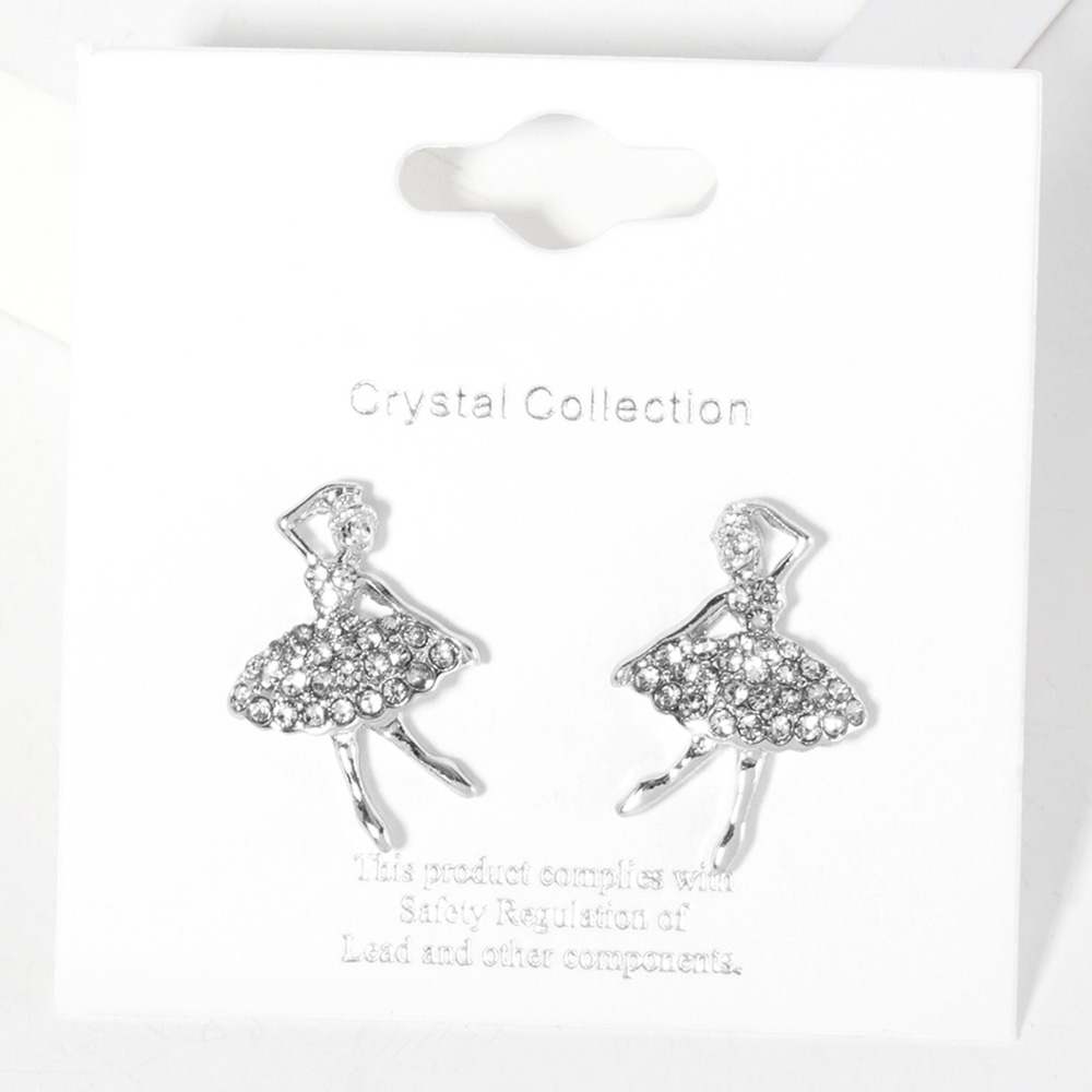 Crystal Paved Ballerina Girl Stud Earrings