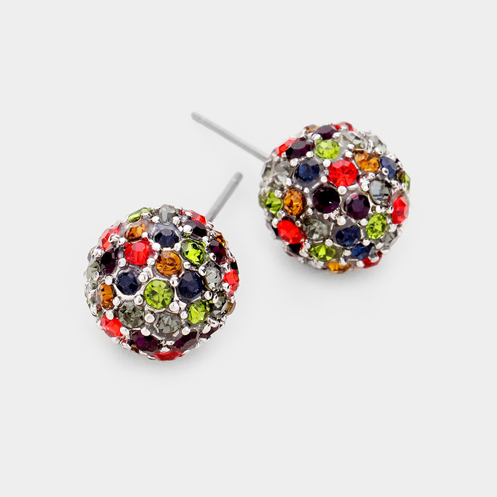 Crystal Paved Disco Ball Stud Earrings