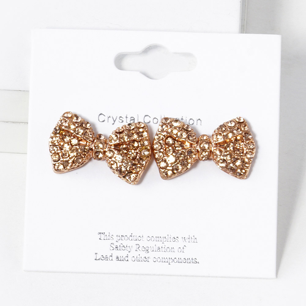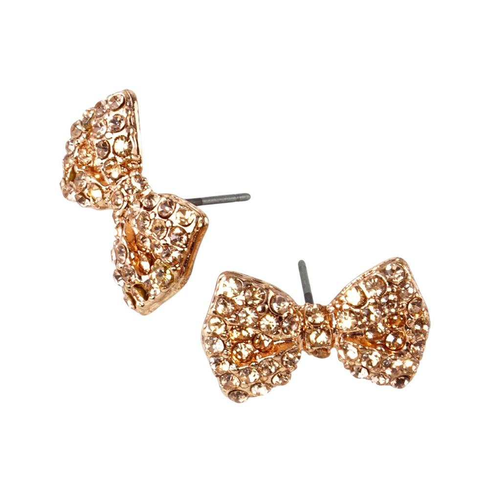 Details • Size : 0.75" X 0.5" • Post Back • Add a touch of glamour with the Crystal Bow Stud Earrings, featuring a radiant design that captures light beautifully. Perfect for both casual and formal looks, these sparkling earrings offer timeless elegance and charm, making them a must-have accessory for any jewelry collection. • Lead and Nickel Compliant