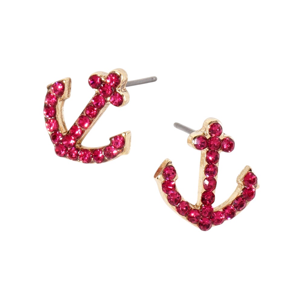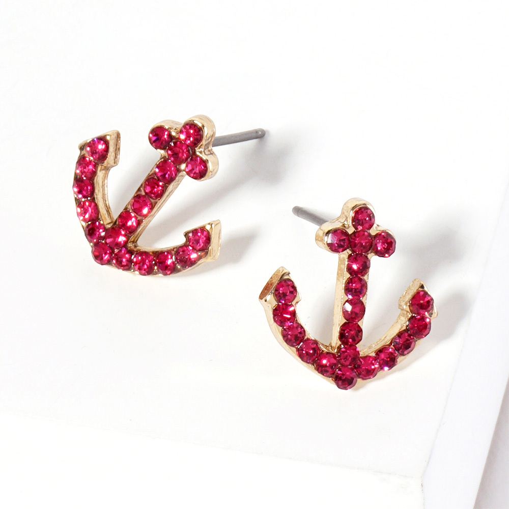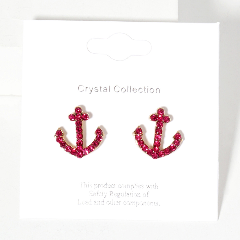 Crystal Rhinestone Paved Anchor Stud Earrings