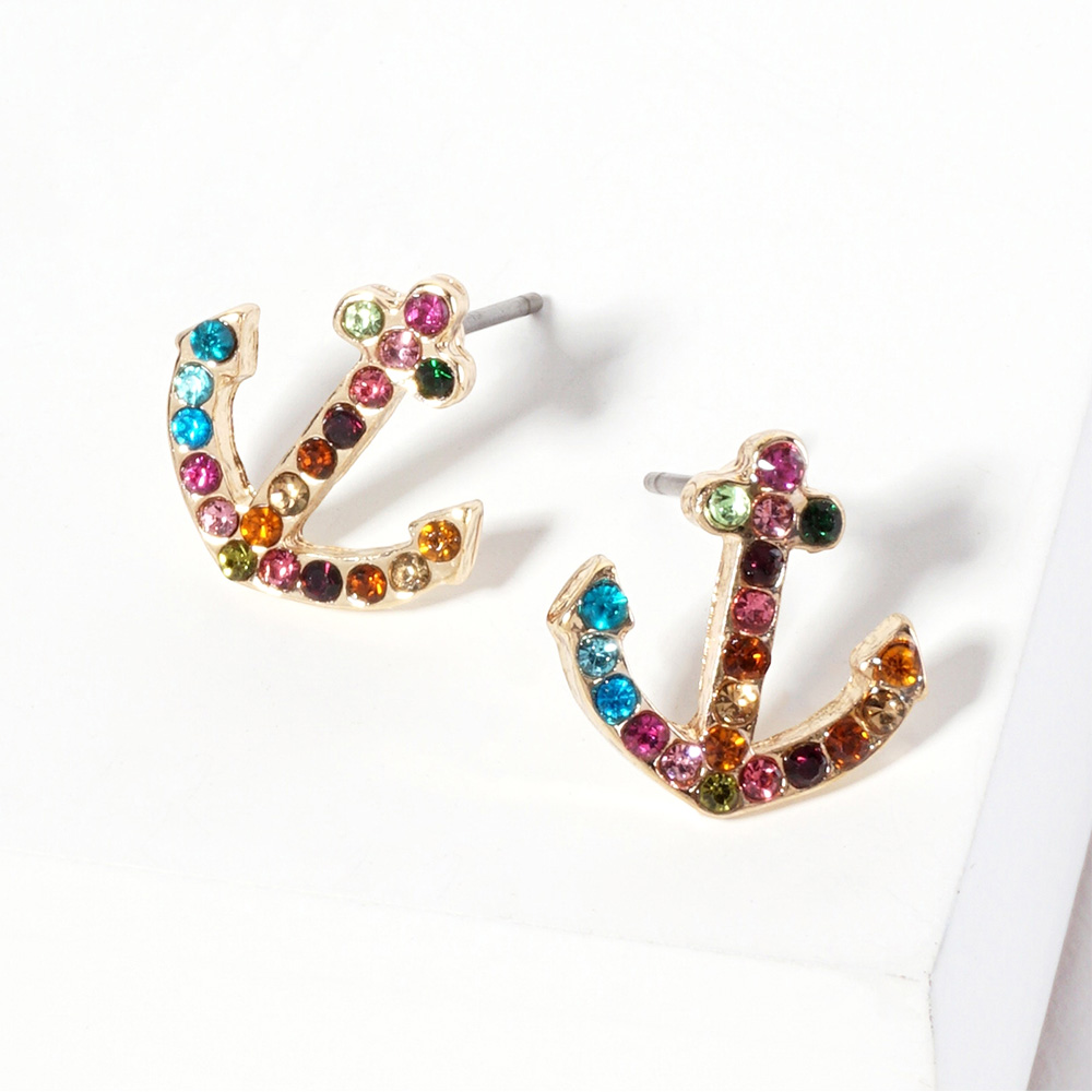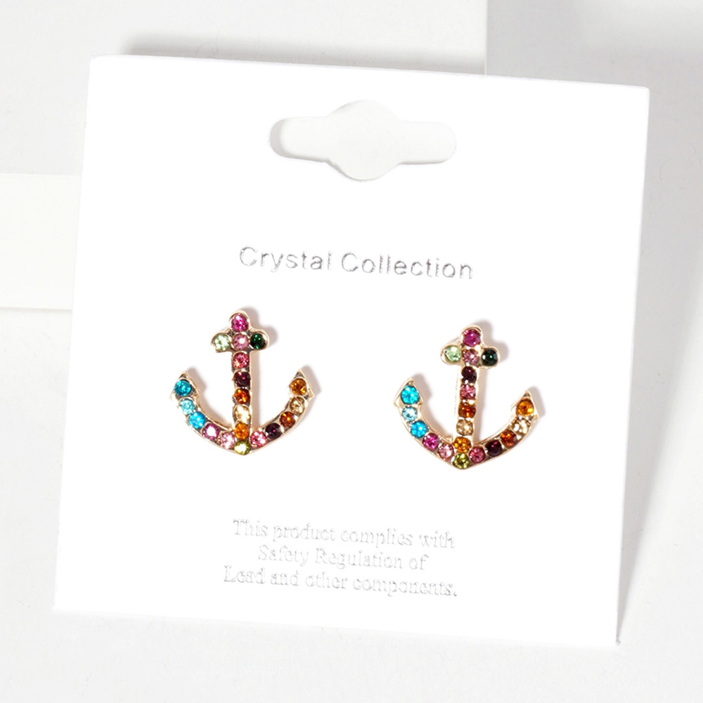 Crystal Rhinestone Paved Anchor Stud Earrings