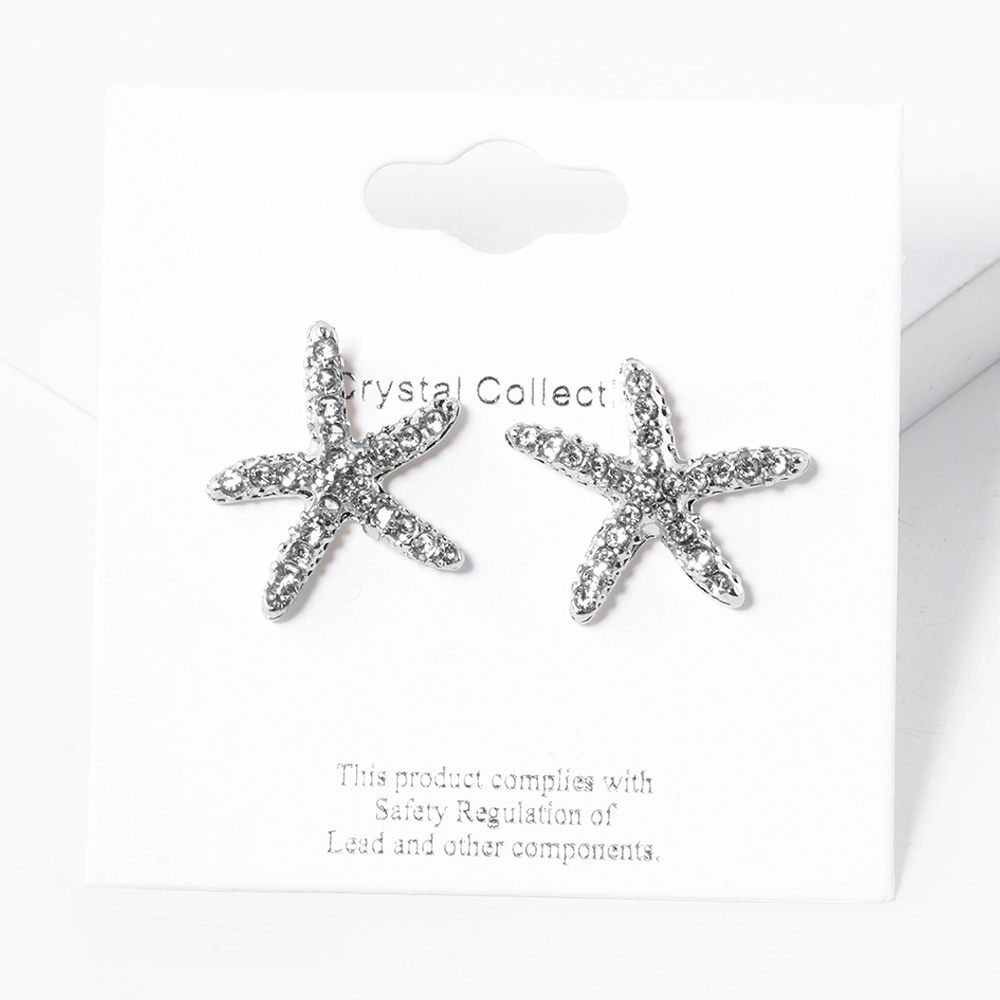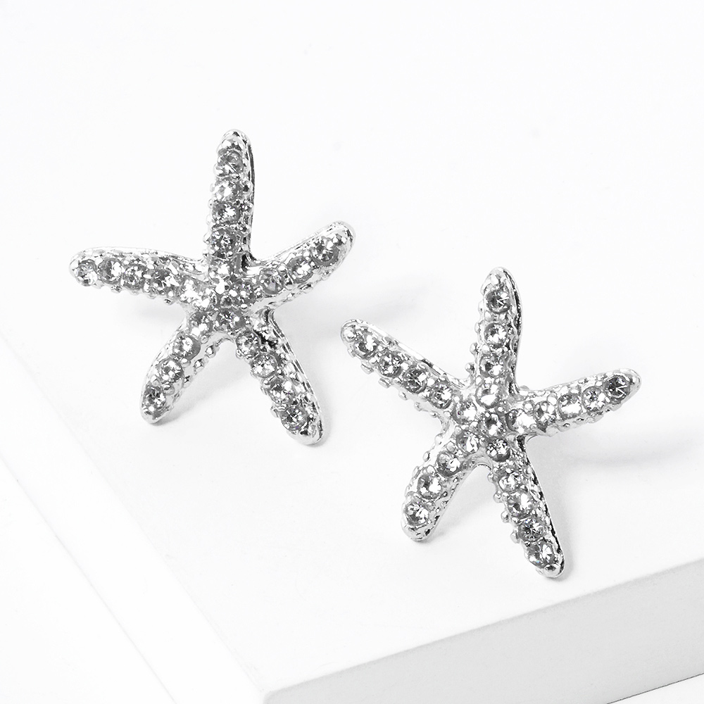 White Gold Dipped CZ Stone Paved Starfish Stud Earrings
