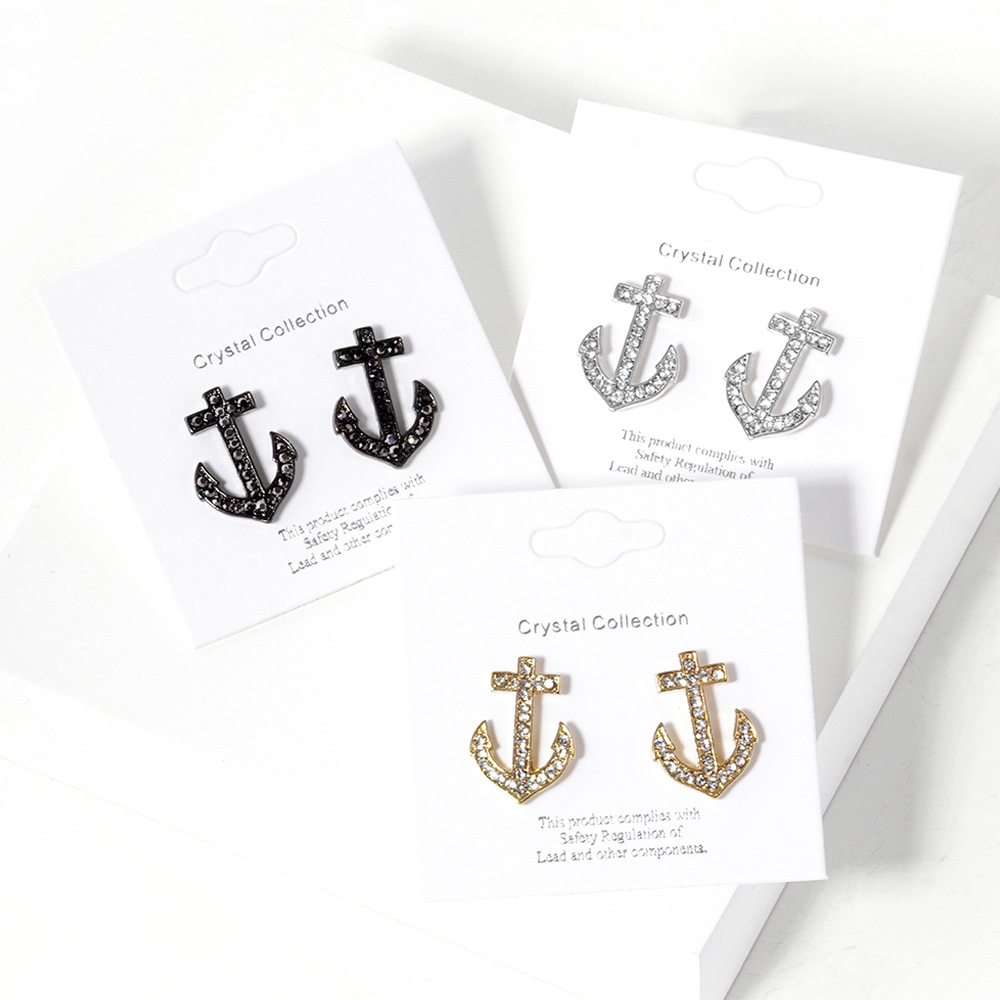 Crystal Rhinestone Paved Anchor Stud Earrings
