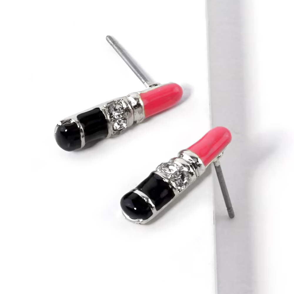 Crystal Stone Paved Enamel Lipstick Stud Earrings Crystal Stone Paved Enamel Lipstick Stud Earrings Crystal Stone Paved Enamel Lipstick Stud Earrings