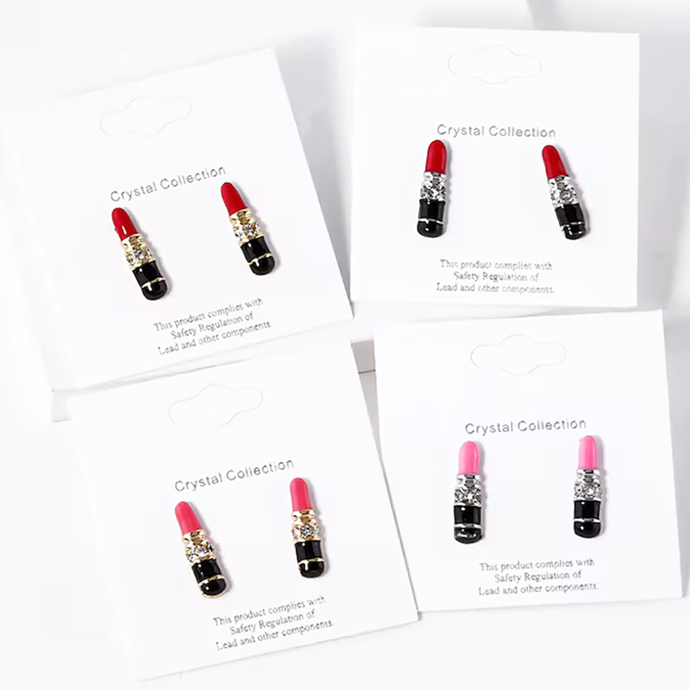 Crystal Stone Paved Enamel Lipstick Stud Earrings Crystal Stone Paved Enamel Lipstick Stud Earrings Crystal Stone Paved Enamel Lipstick Stud Earrings