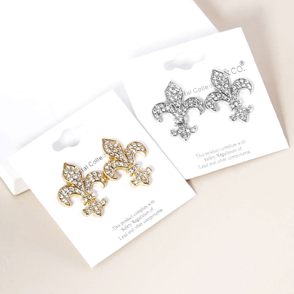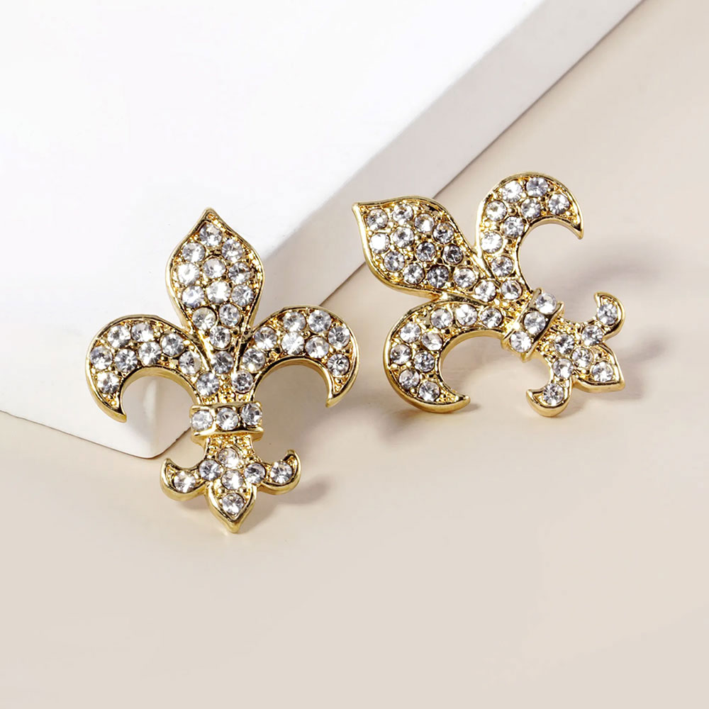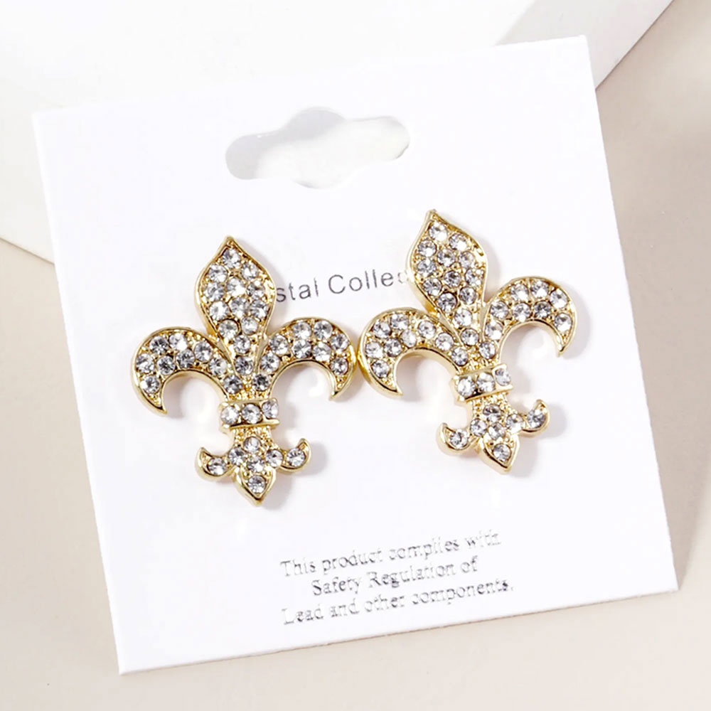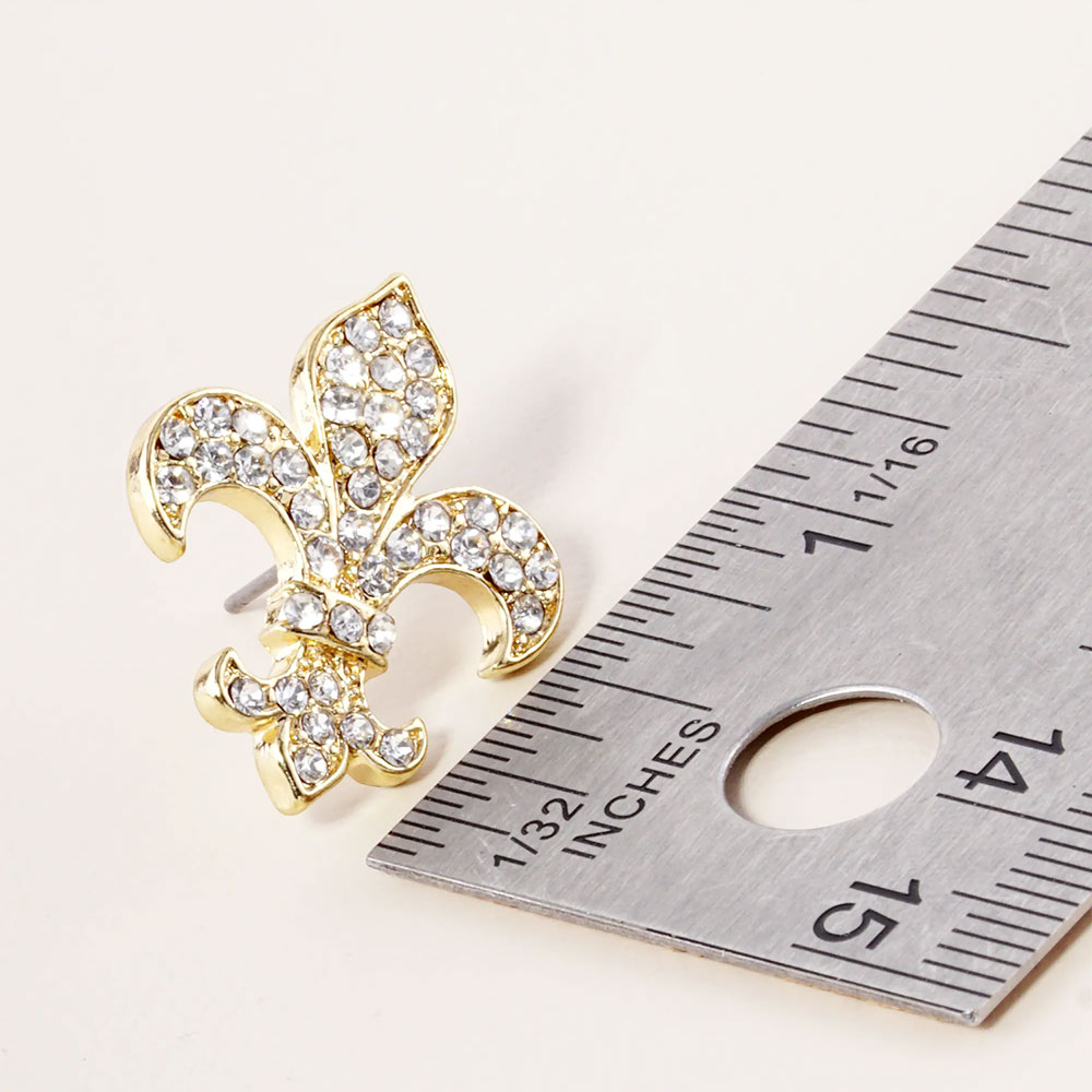 Crystal Stone Paved Fleur de Lis Stud Earrings