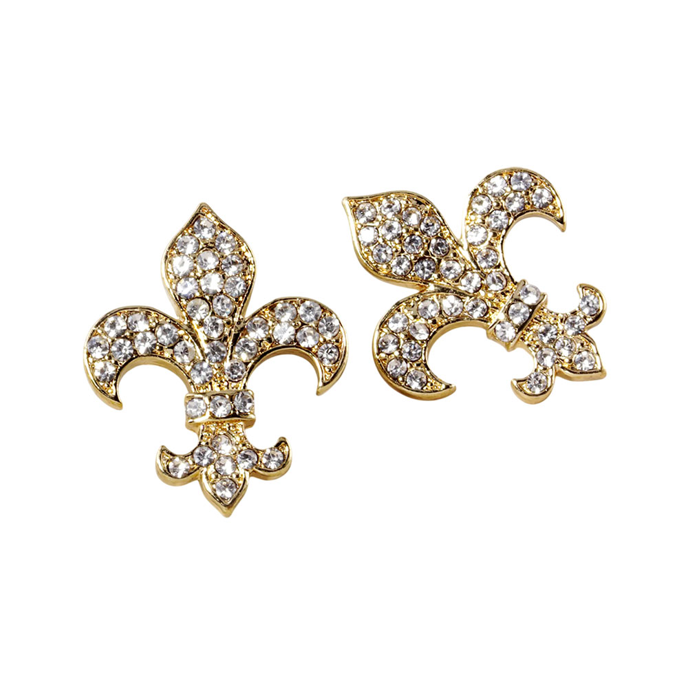 Crystal Stone Paved Mardi Gras Fleur de Lis Stud Earrings