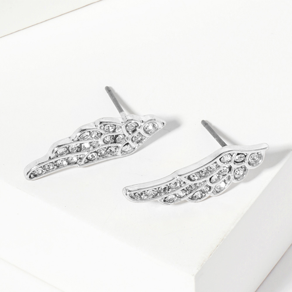 Rhinestone Embellished Metal Angel Wing Key Pendant Chain Necklace