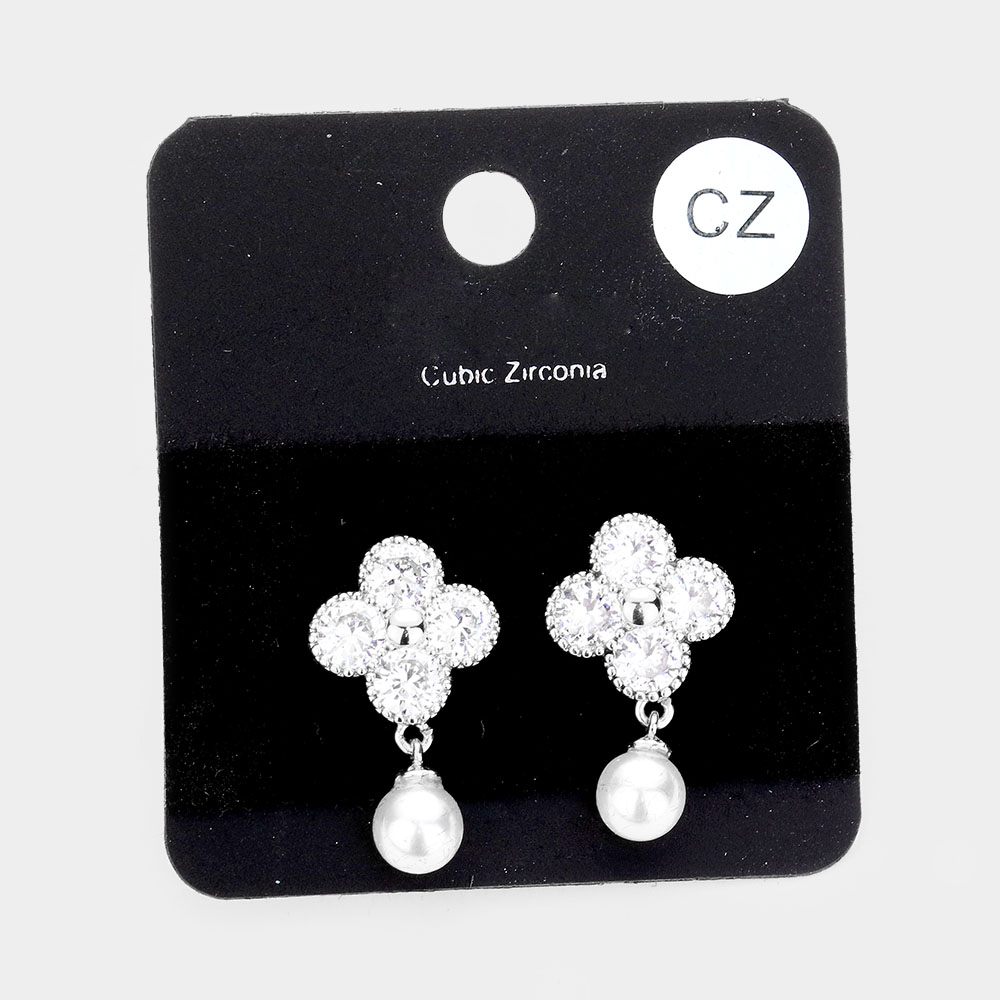 Cubic Zirconia Floral Pearl Stud Earrings