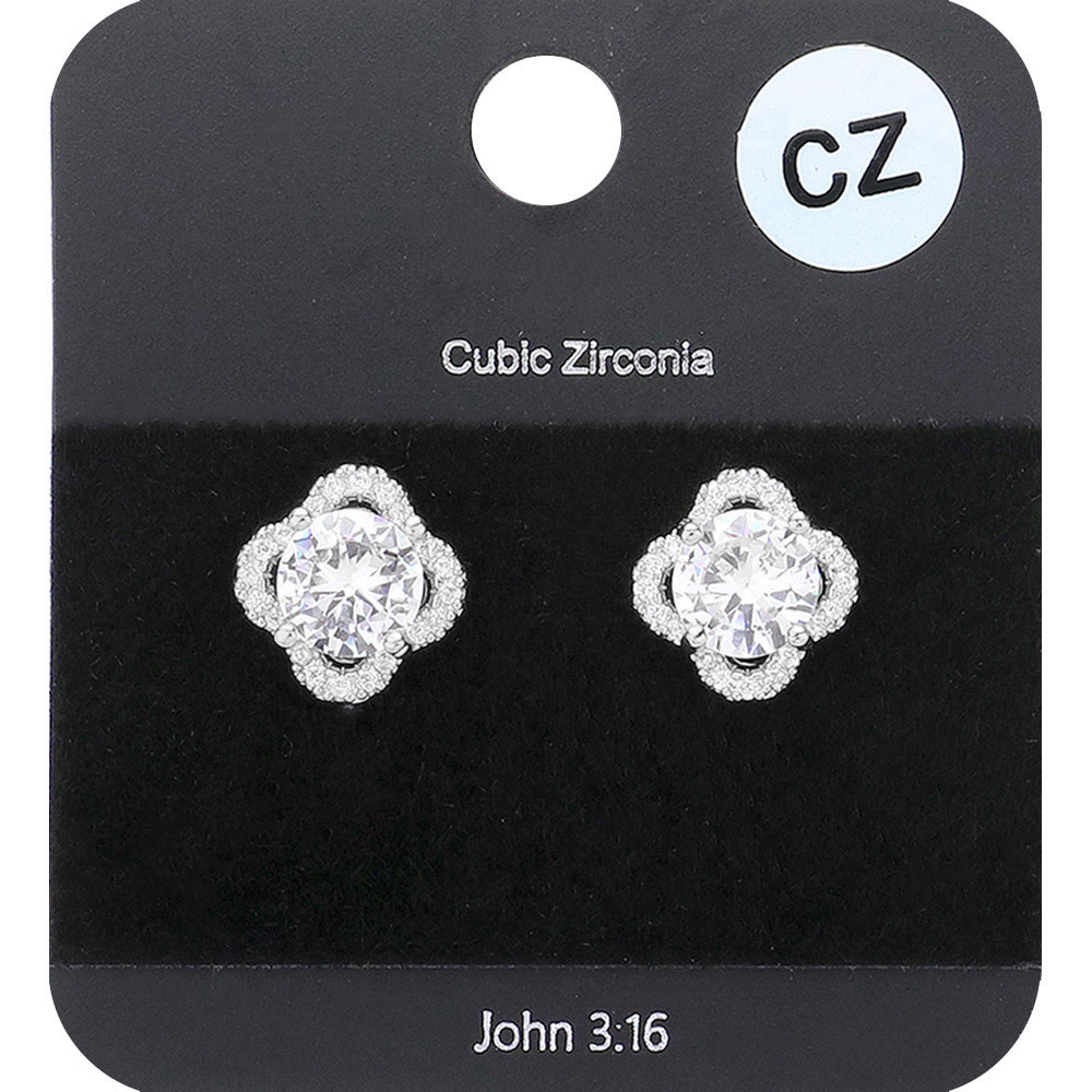Details • Size : 0.35" X 0.35" • Post Back • Delicate cubic zirconia stud earrings with a floral-inspired silhouette and shimmering gold tone finish. A timeless and versatile accessory perfect for everyday elegance or subtle sparkle for special occasions. • Lead and Nickel Compliant • CZ Cubic Zirconia