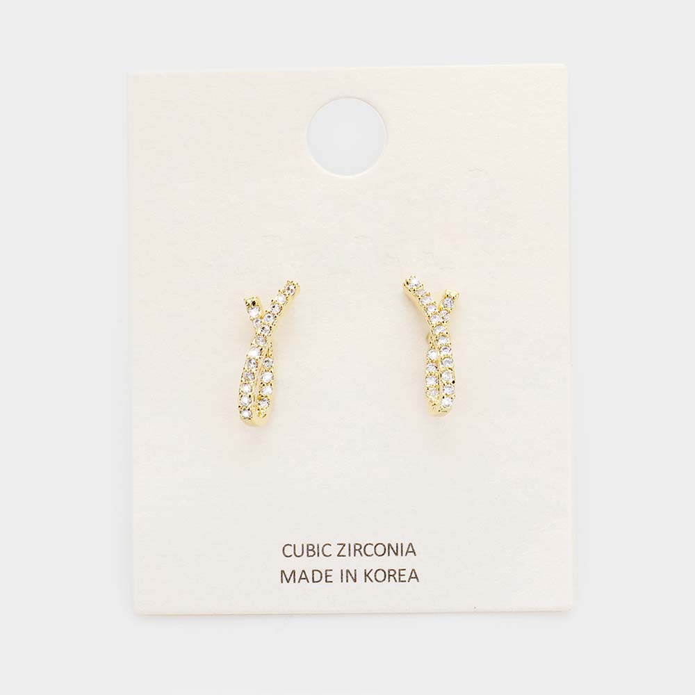 14K Gold Dipped Hypoallergenic Baguette CZ Stone Accent Hoop Earrings