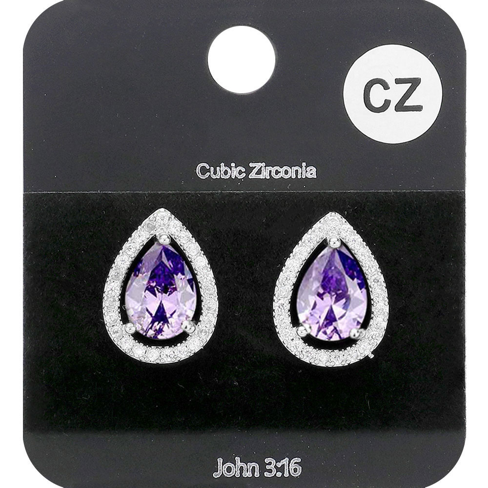 Cubic Zirconia Teardrop Stud Earrings