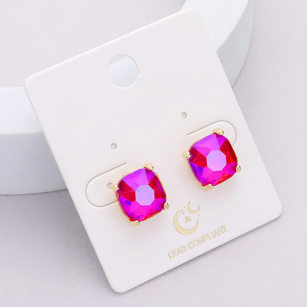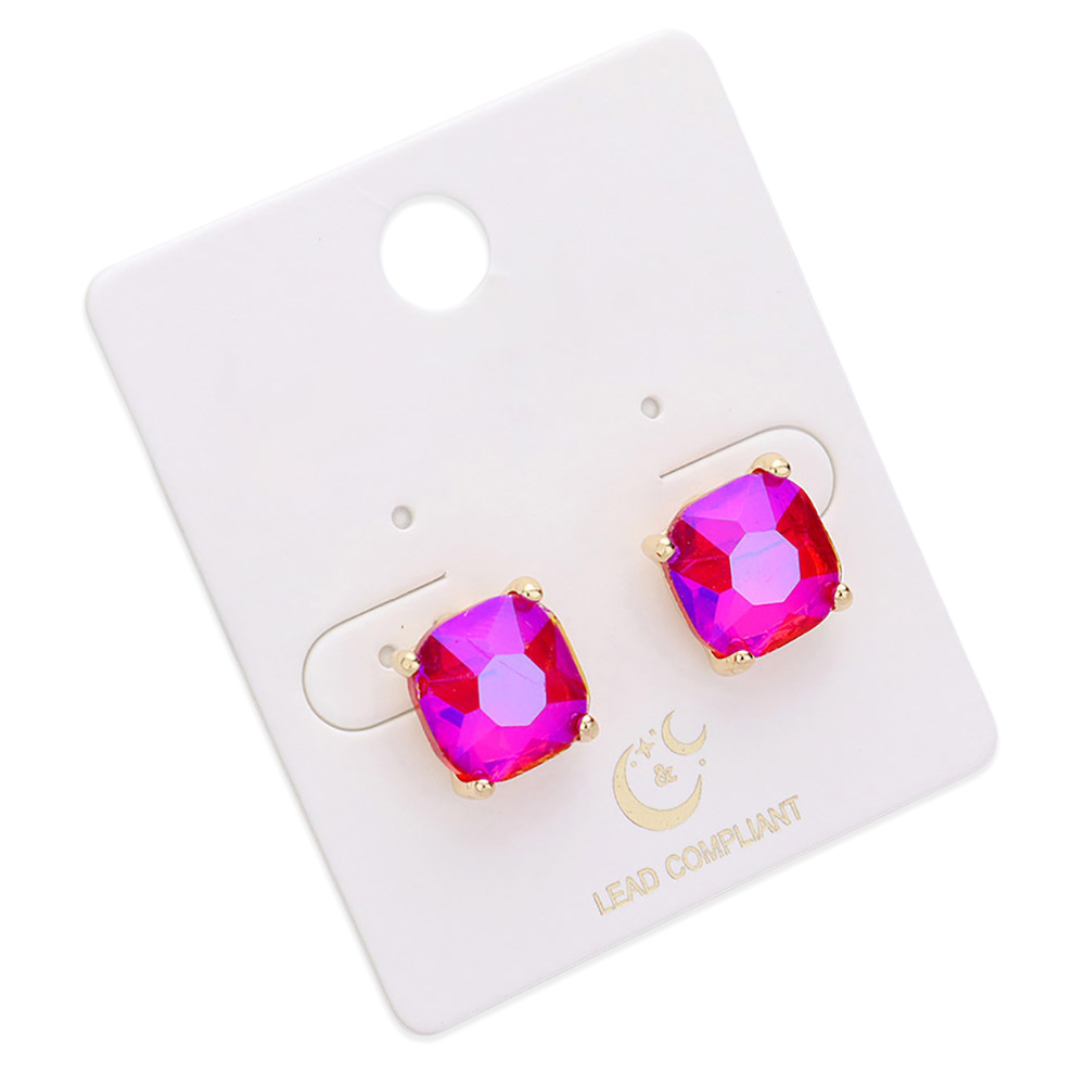 • Brighten up your style with these cushion-cut crystal stud earrings, set in a classic four-prong setting for maximum brilliance. Perfect for everyday wear or special occasions, these elegant studs add a vibrant, polished touch to any outfit with ease.