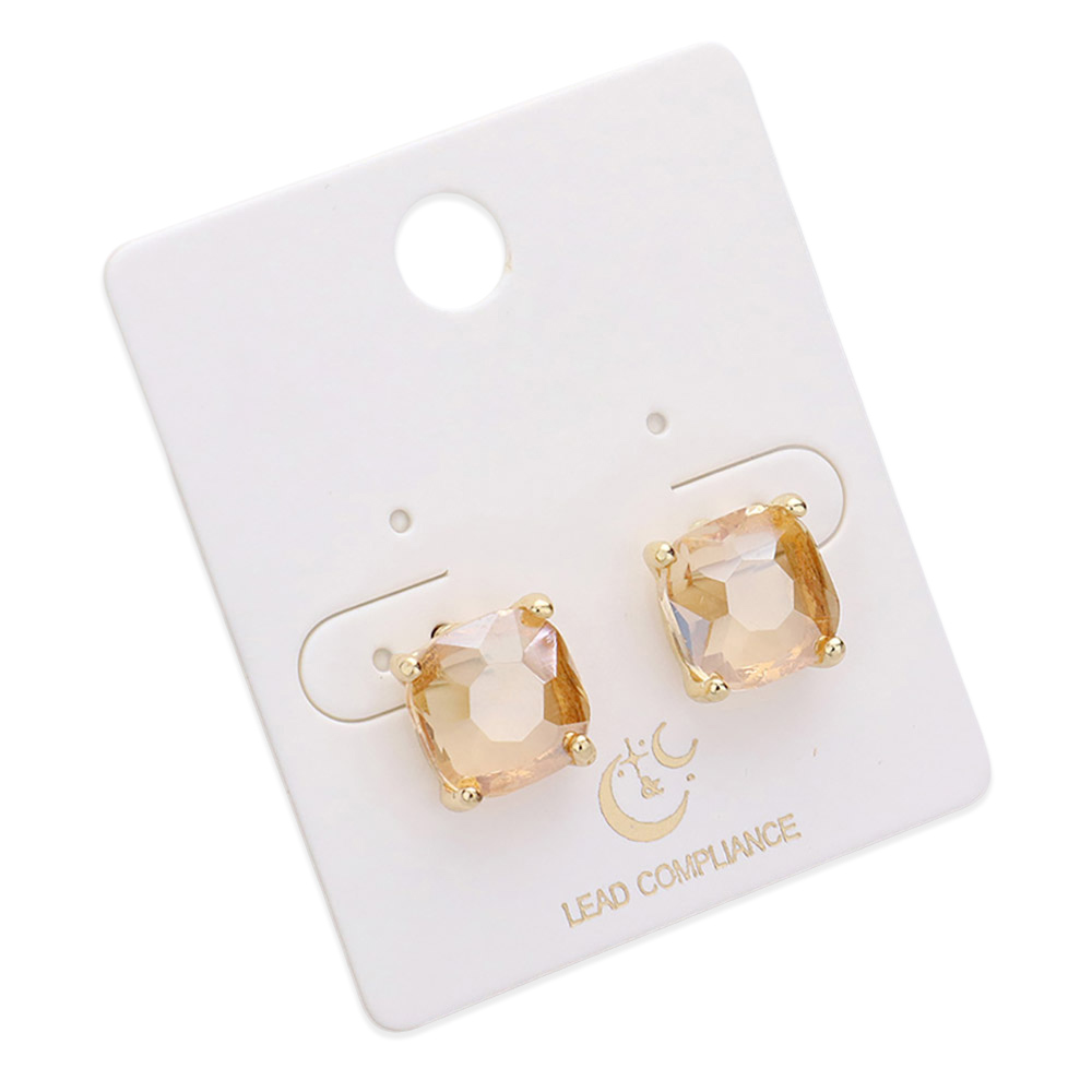 • Brighten up your style with these cushion-cut crystal stud earrings, set in a classic four-prong setting for maximum brilliance. Perfect for everyday wear or special occasions, these elegant studs add a vibrant, polished touch to any outfit with ease.