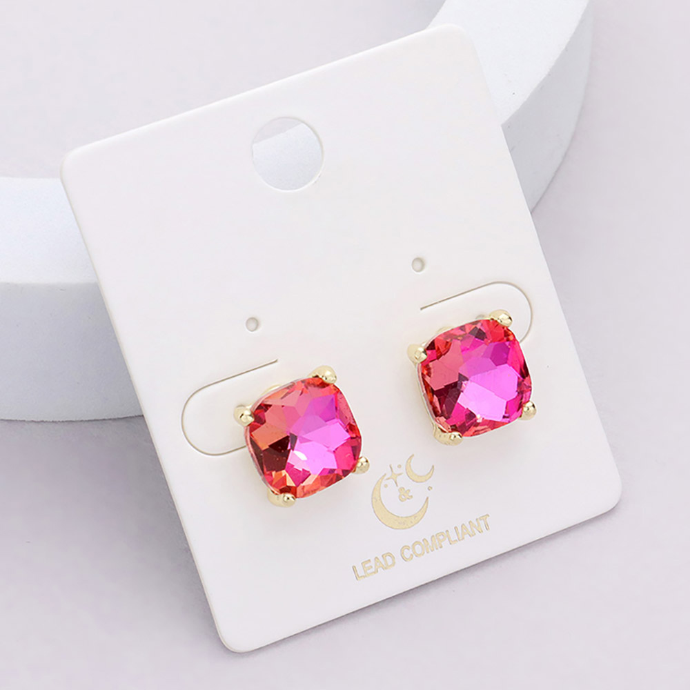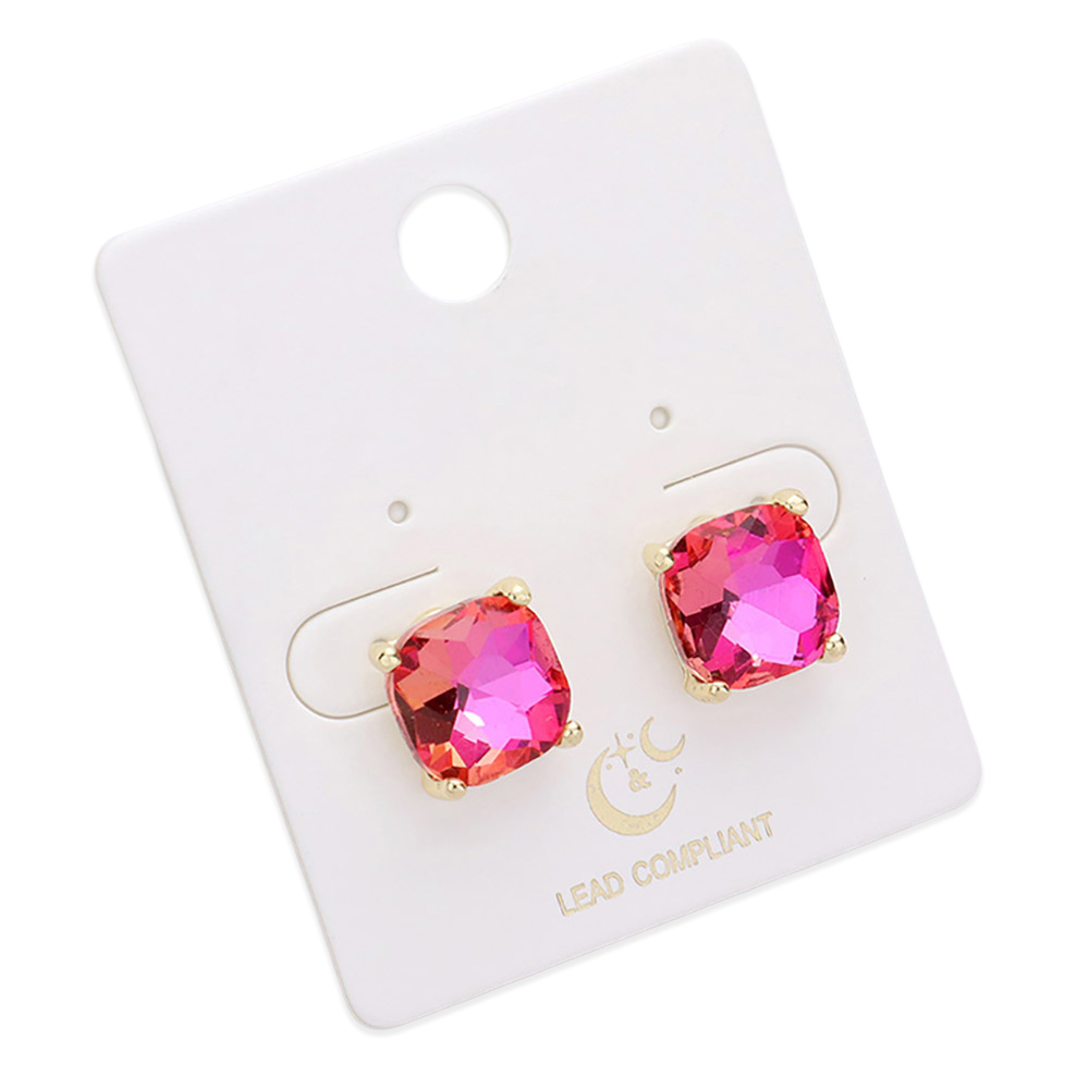 • Brighten up your style with these cushion-cut crystal stud earrings, set in a classic four-prong setting for maximum brilliance. Perfect for everyday wear or special occasions, these elegant studs add a vibrant, polished touch to any outfit with ease.