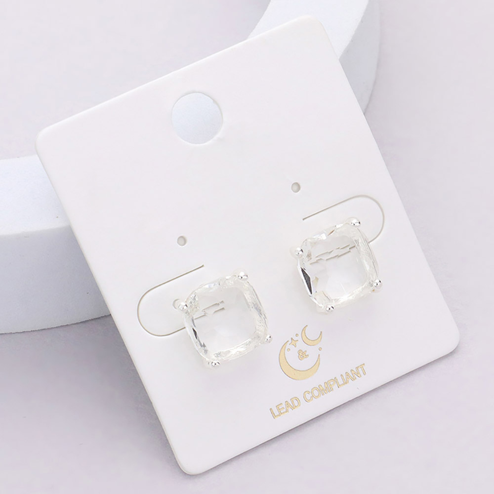 Cushion Square Stone Stud Evening Earrings Cushion Square Stone Stud Evening Earrings