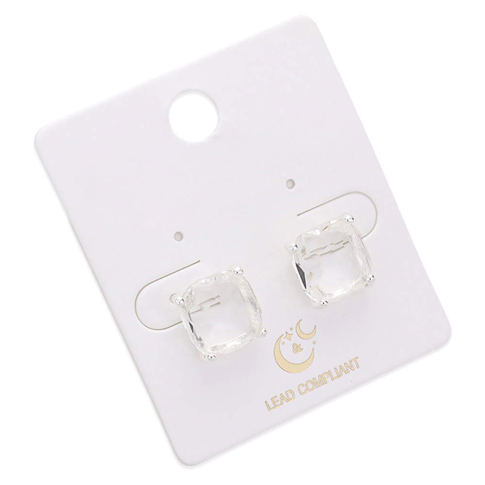 • Brighten up your style with these cushion-cut crystal stud earrings, set in a classic four-prong setting for maximum brilliance. Perfect for everyday wear or special occasions, these elegant studs add a vibrant, polished touch to any outfit with ease.