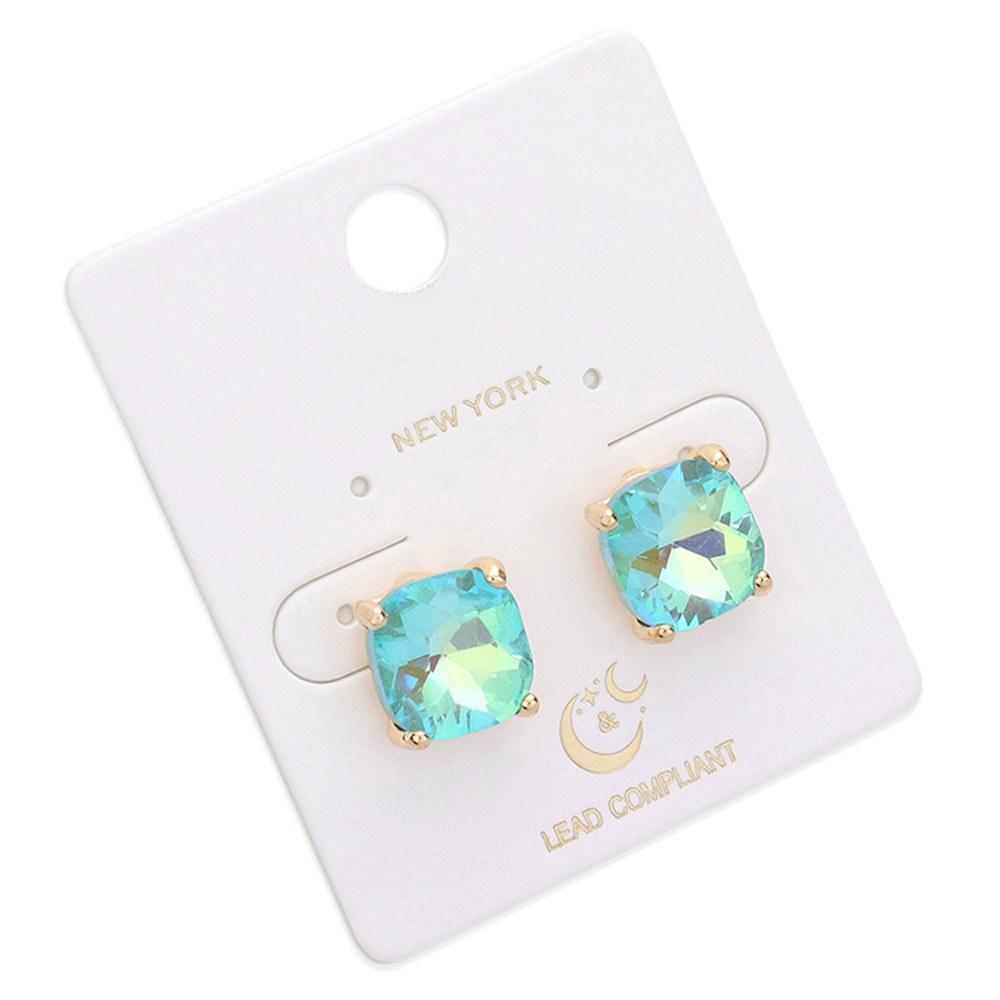 • Brighten up your style with these cushion-cut crystal stud earrings, set in a classic four-prong setting for maximum brilliance. Perfect for everyday wear or special occasions, these elegant studs add a vibrant, polished touch to any outfit with ease.