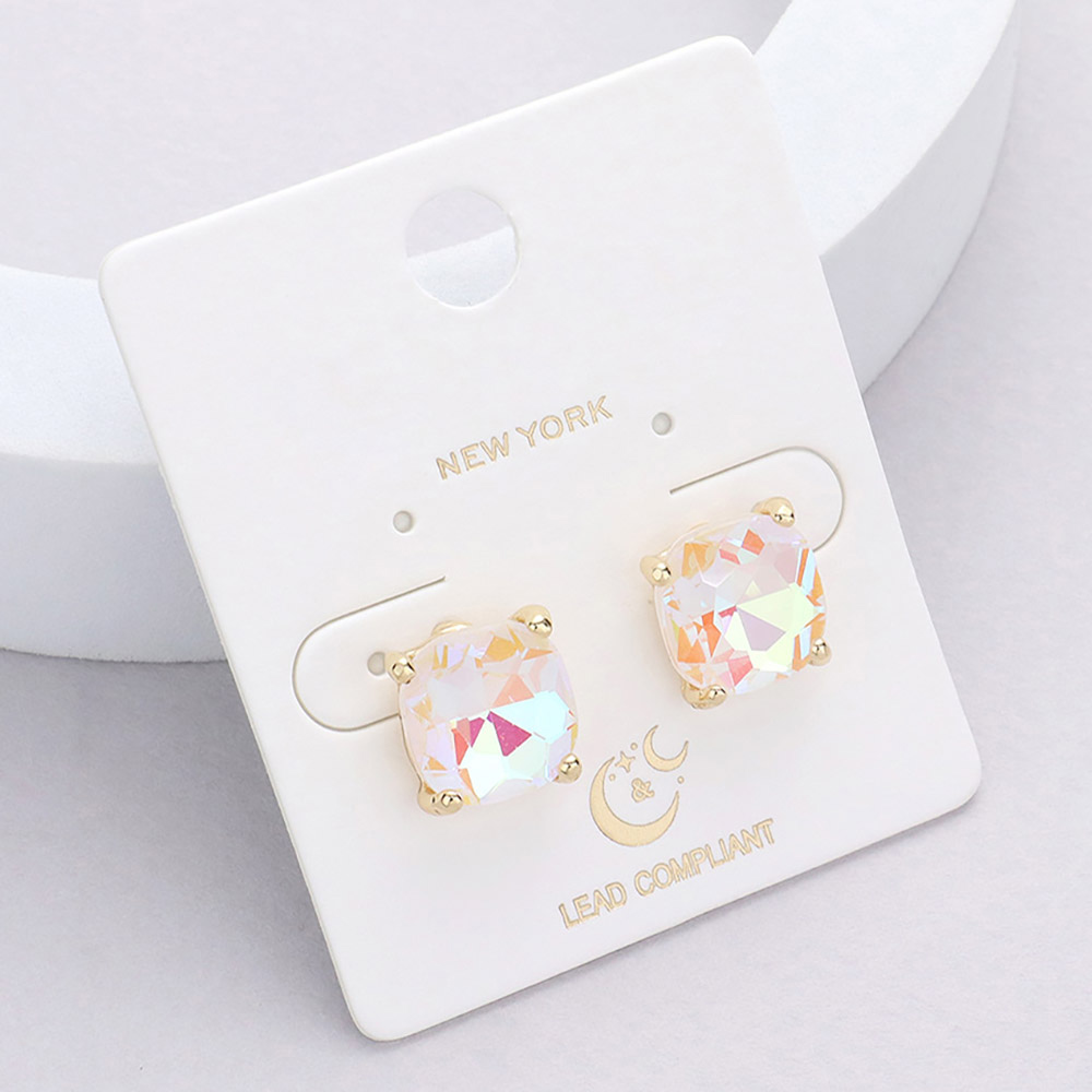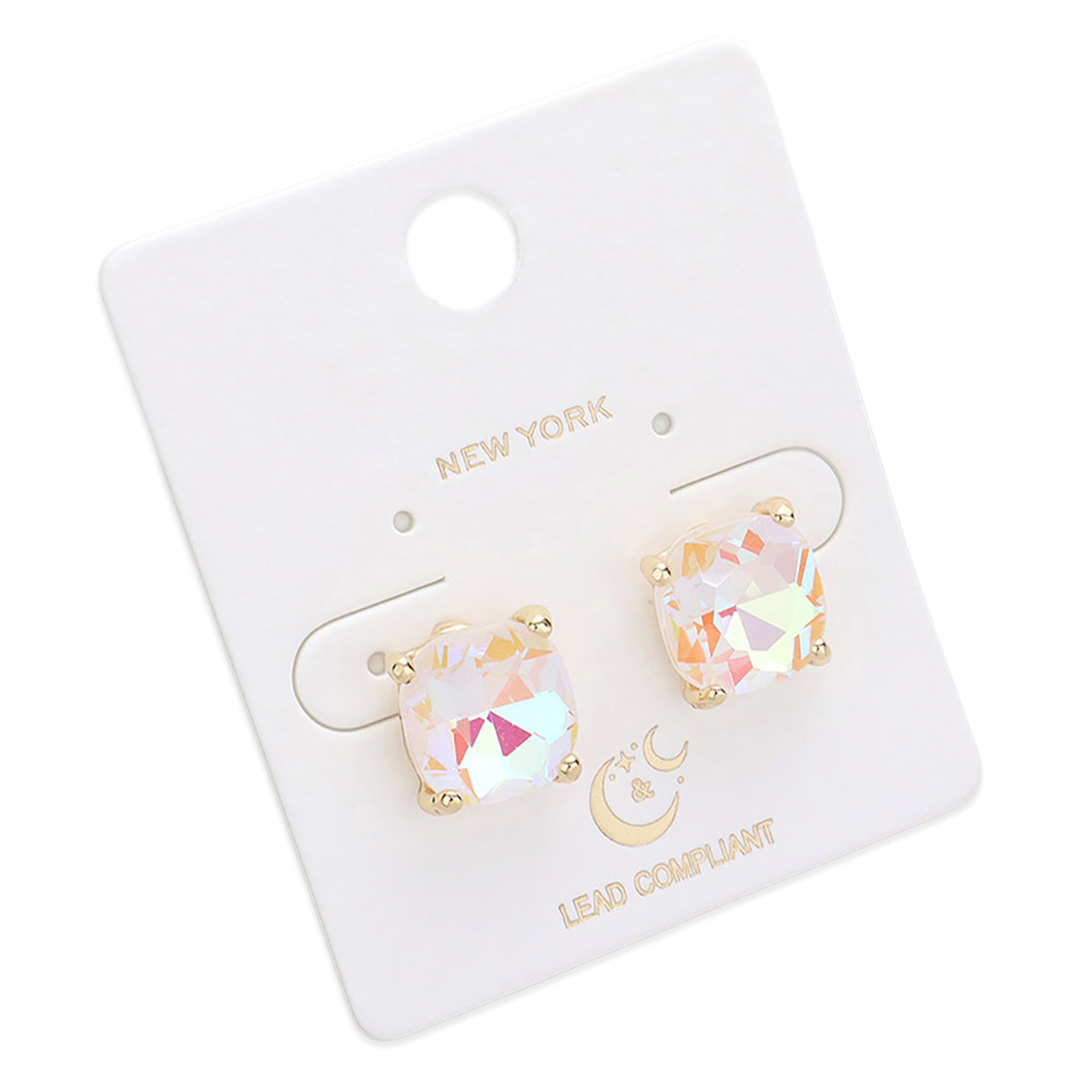 • Brighten up your style with these cushion-cut crystal stud earrings, set in a classic four-prong setting for maximum brilliance. Perfect for everyday wear or special occasions, these elegant studs add a vibrant, polished touch to any outfit with ease.