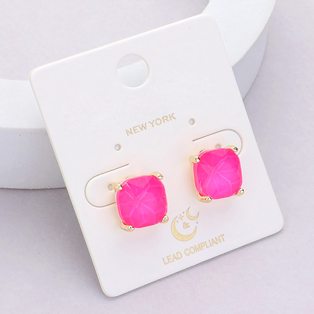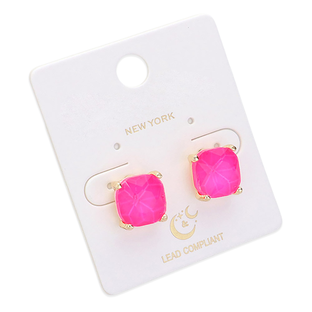 • Brighten up your style with these cushion-cut crystal stud earrings, set in a classic four-prong setting for maximum brilliance. Perfect for everyday wear or special occasions, these elegant studs add a vibrant, polished touch to any outfit with ease.
