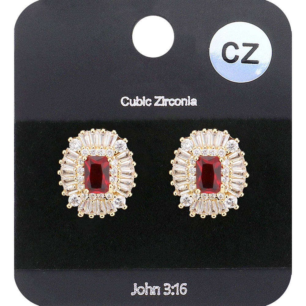 CZ Emerald Cut Stone Centered Evening Stud Earrings
