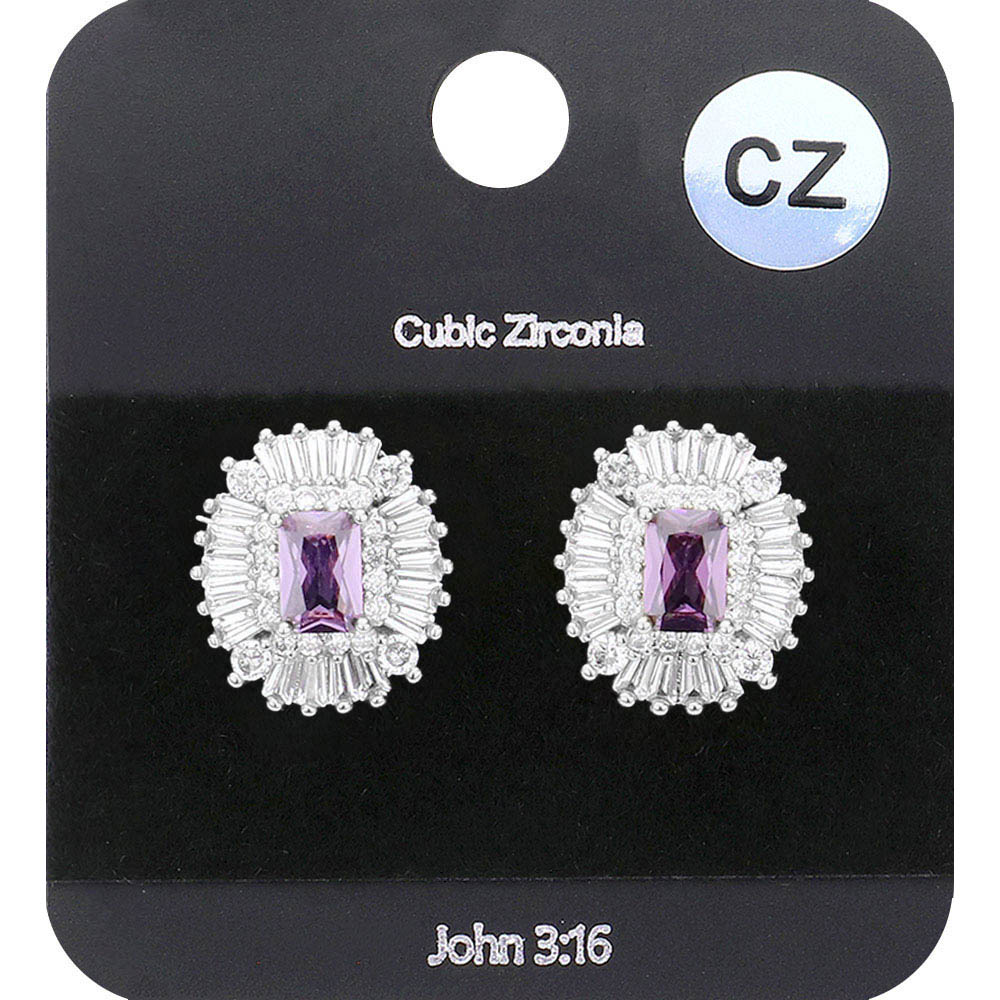 CZ Emerald Cut Stone Centered Evening Stud Earrings