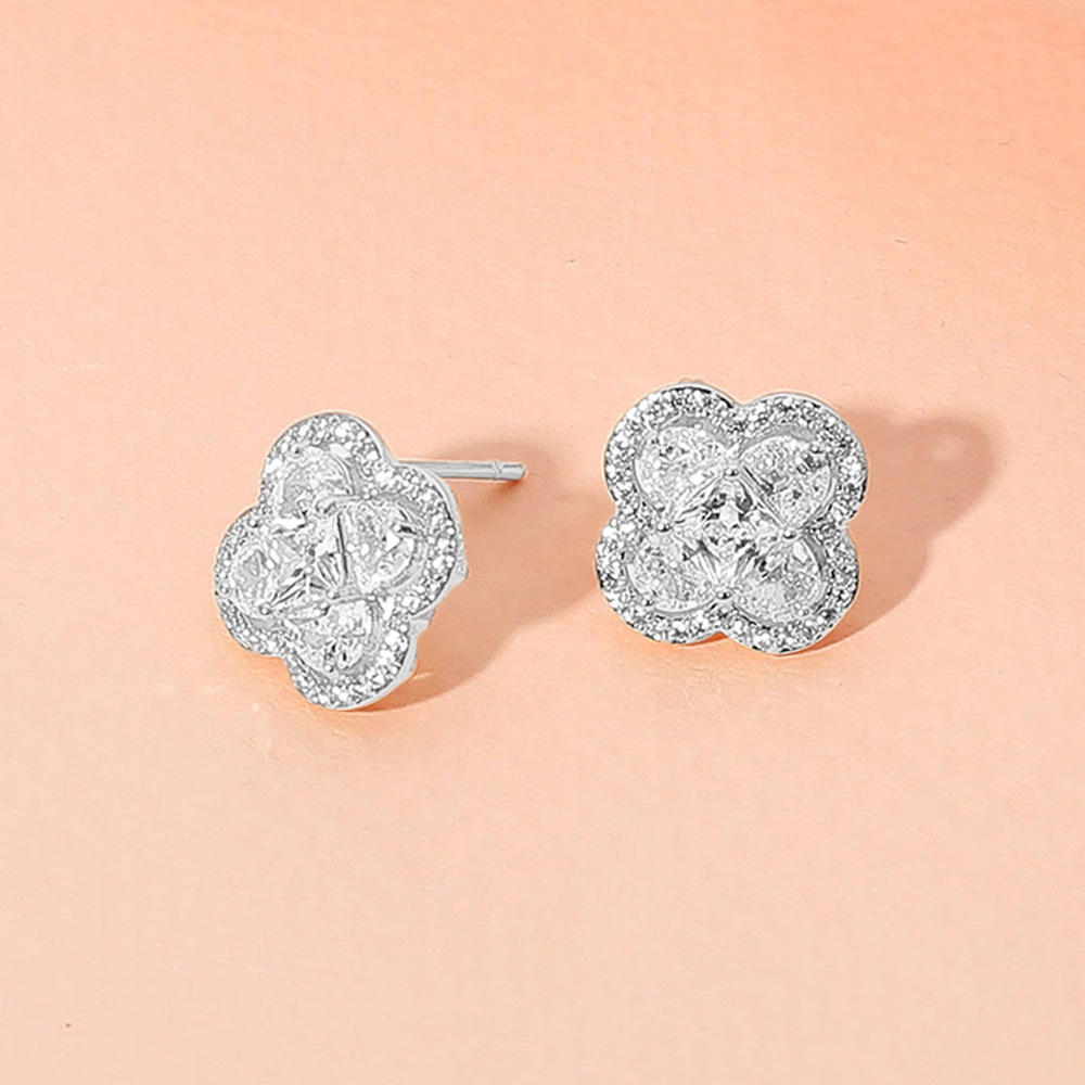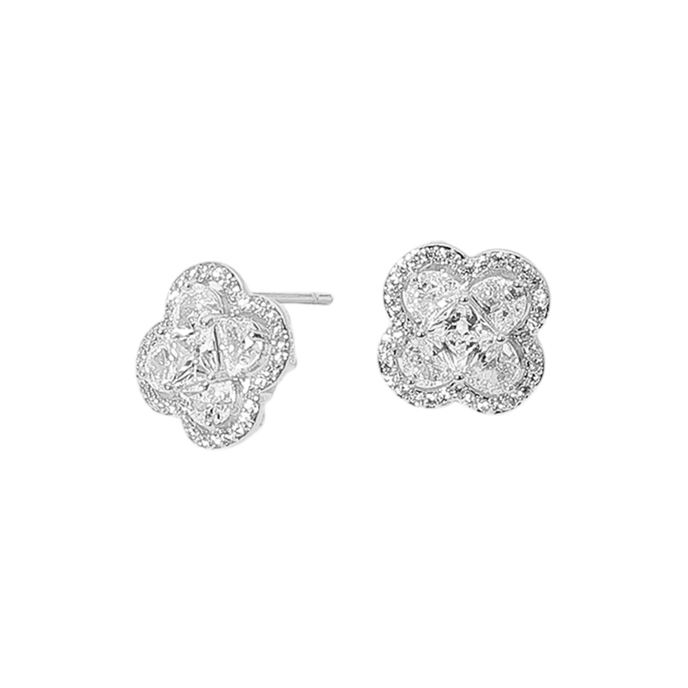 CZ Quatrefoil Stone Cluster Stud Earrings