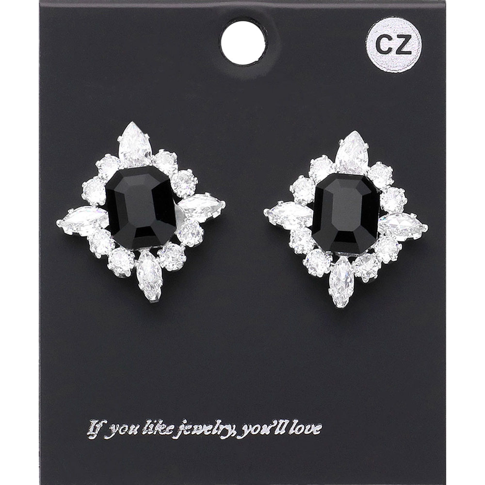 CZ Rectangle Stone Cluster Pointed Evening Stud Earrings