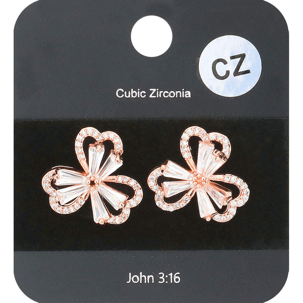 SECRET BOX_Sterling Silver Dipped CZ Clover Key Stud Earrings