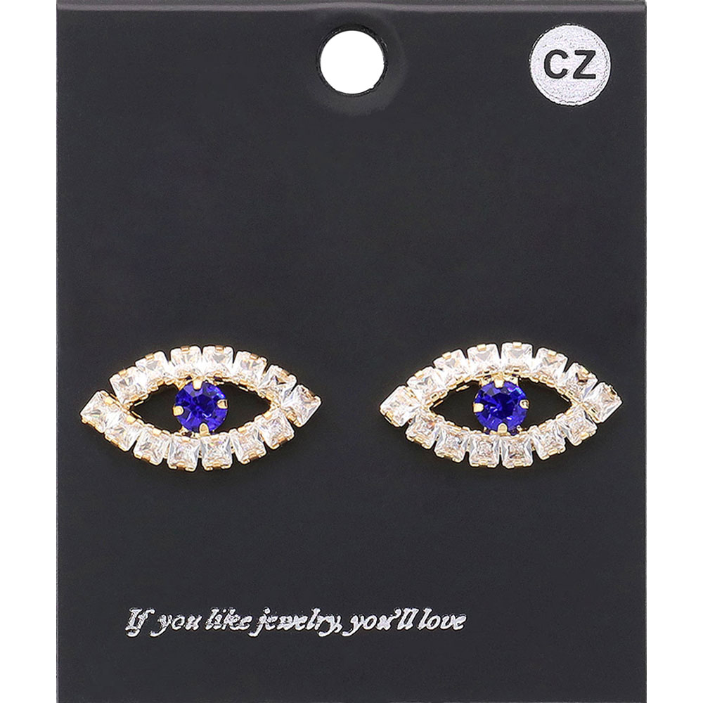 14K Gold Plated CZ Stone Paved Enamel Evil Eye Pendant Pointed Cuban Chain Necklace