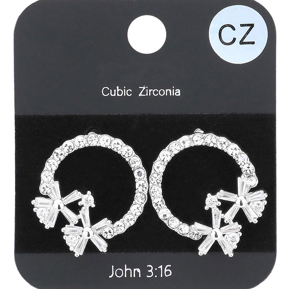 CZ Stone Pave Open Circle Flower Embellished Stud Earrings