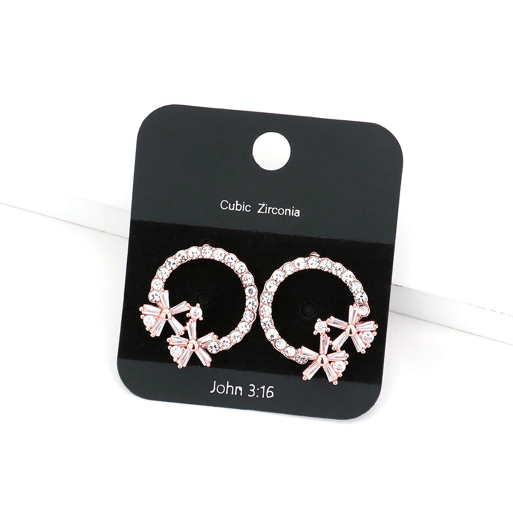 CZ Stone Pave Open Circle Flower Embellished Stud Earrings