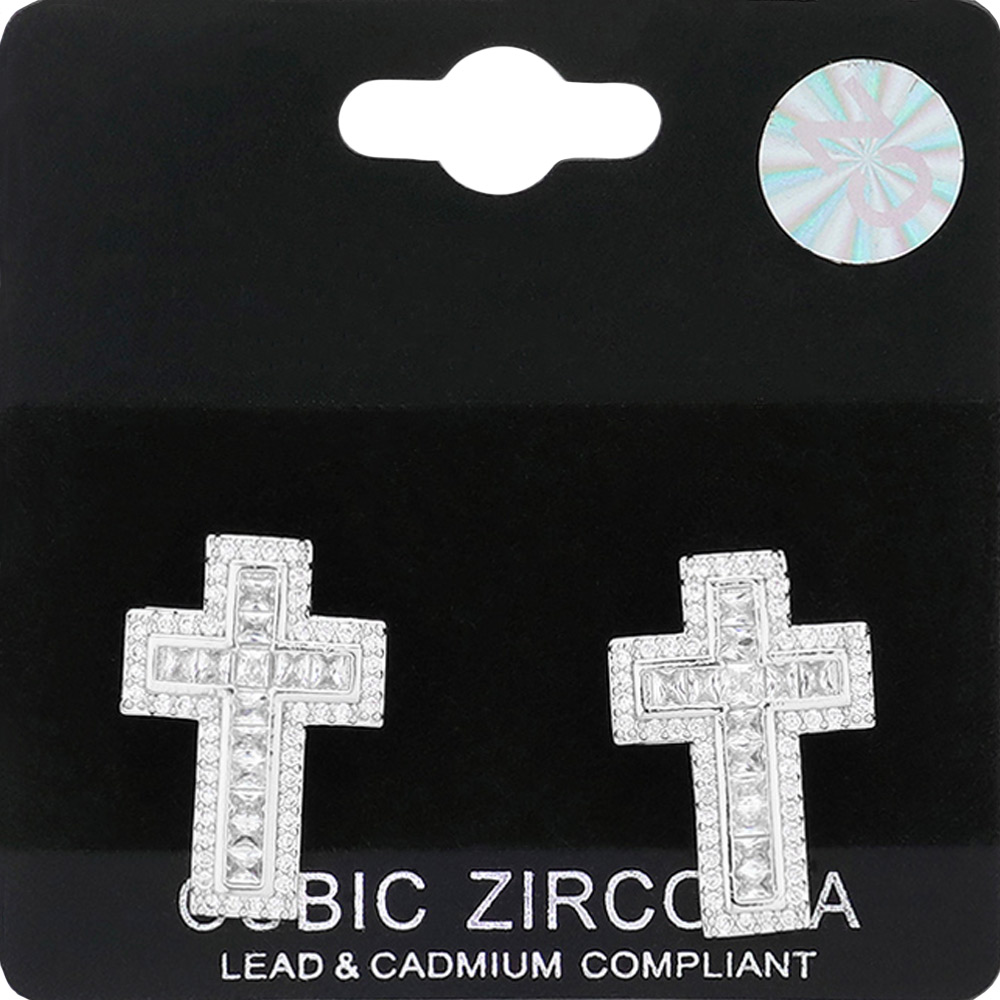 Iridescent Heart Stone Centered Ornate Cross Dangle Earrings