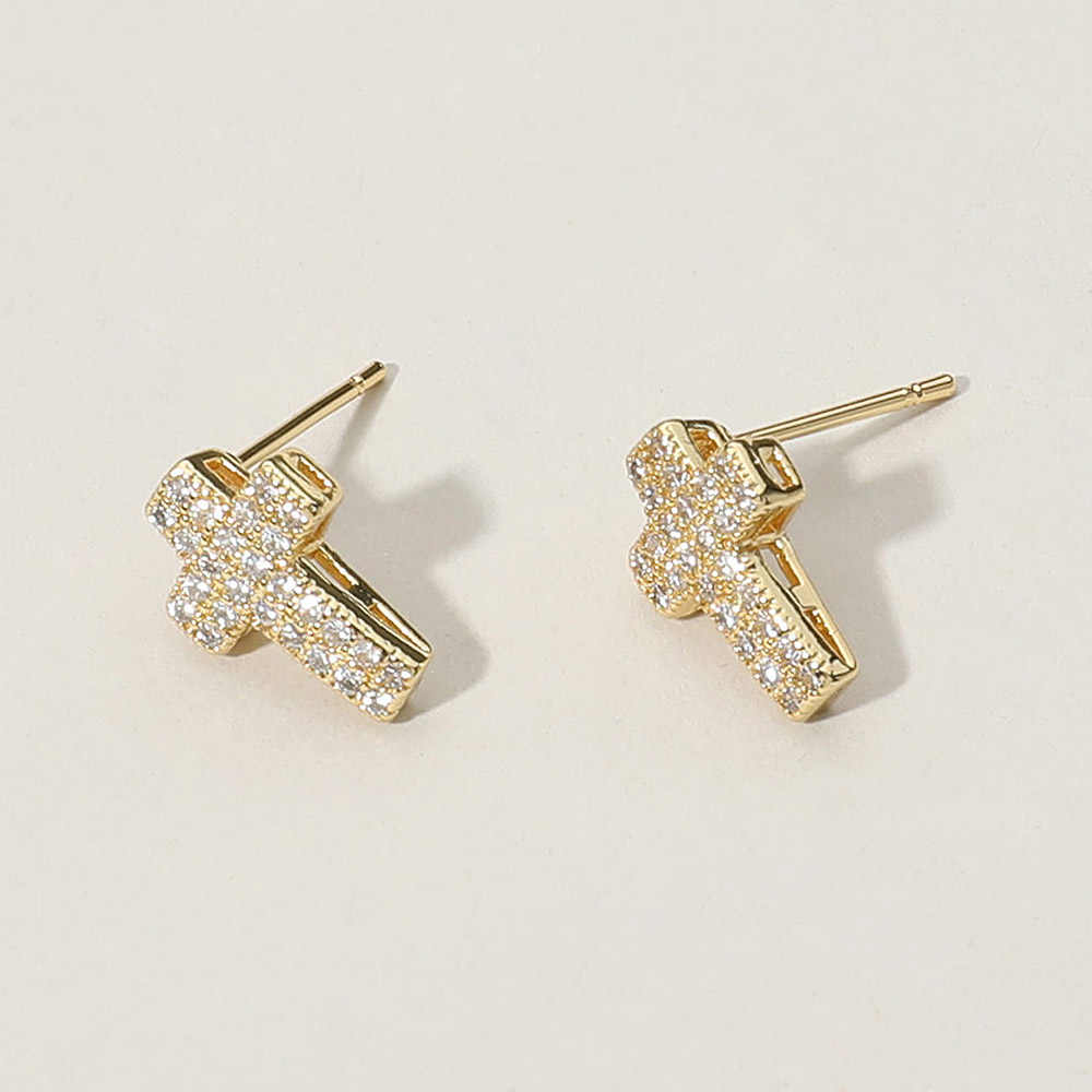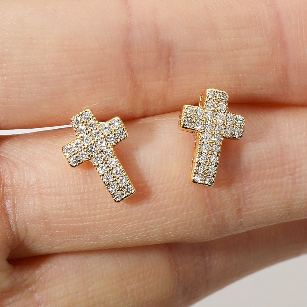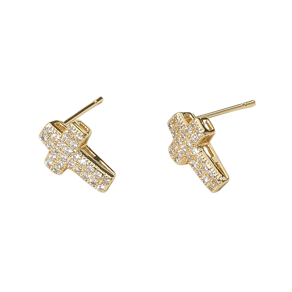 Stone Paved Cross Charm Pointed Beaded Metal Paperclip Chain Layered Bracelet