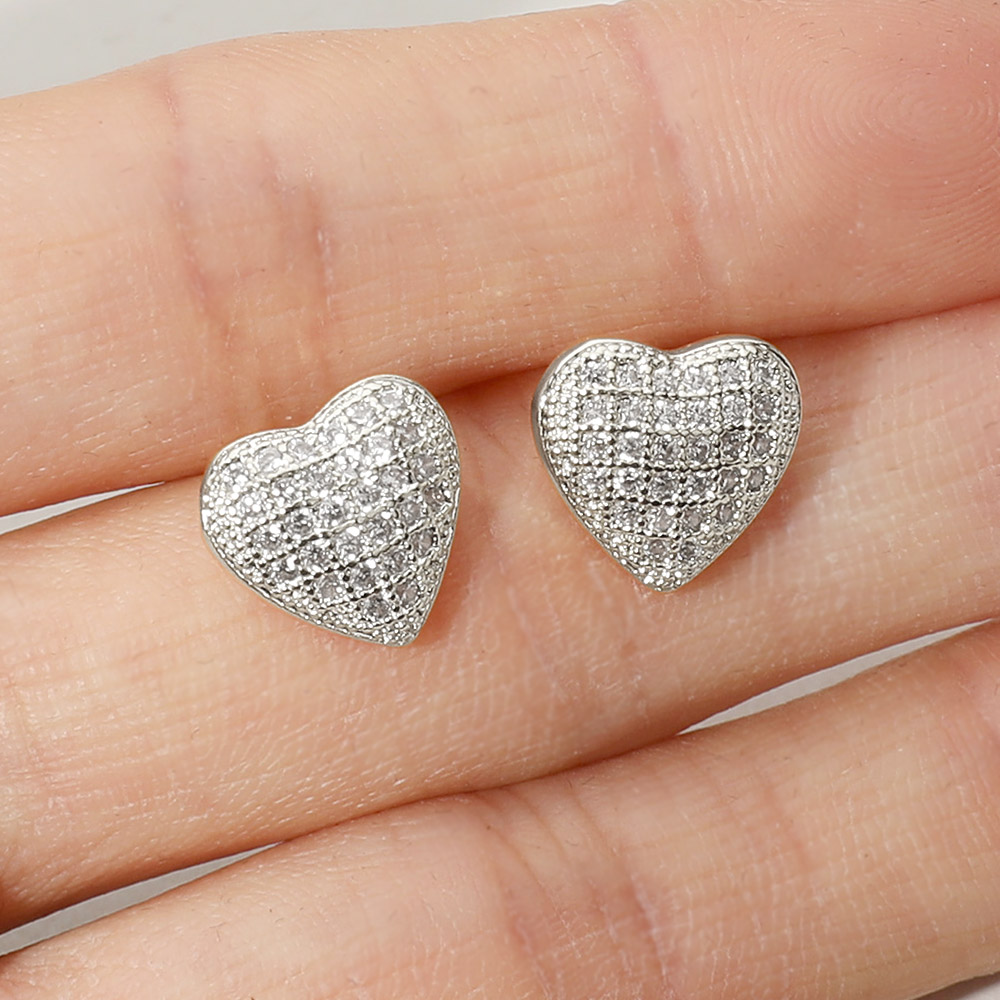 CZ Stone Paved Heart Stud Earrings