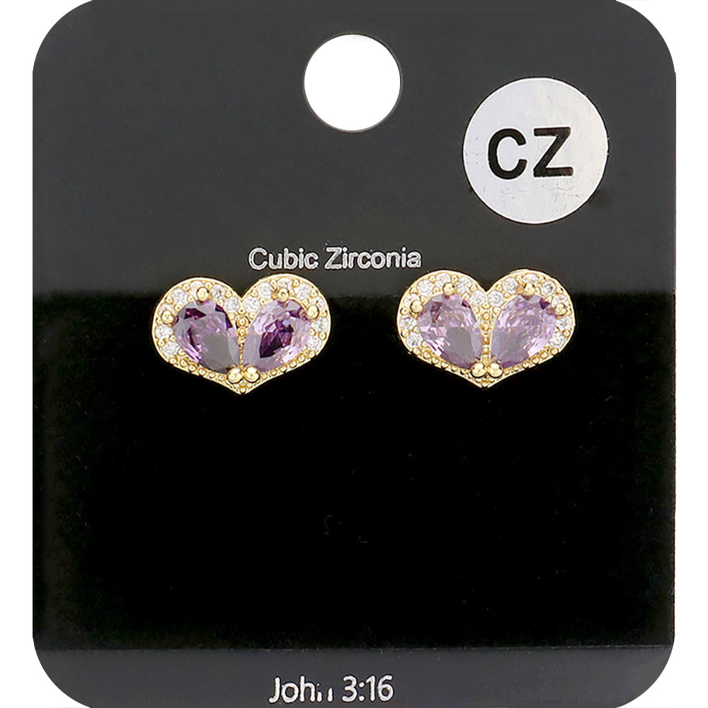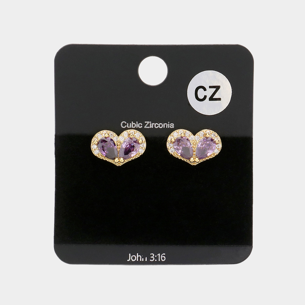 CZ Teardrop Accented Heart Stud Evening Earrings
