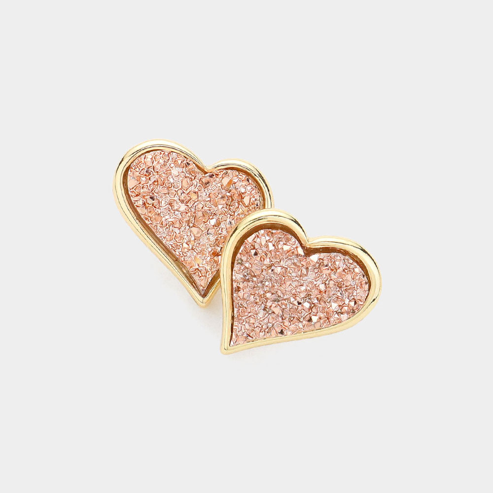 Druzy Heart Stud Earrings