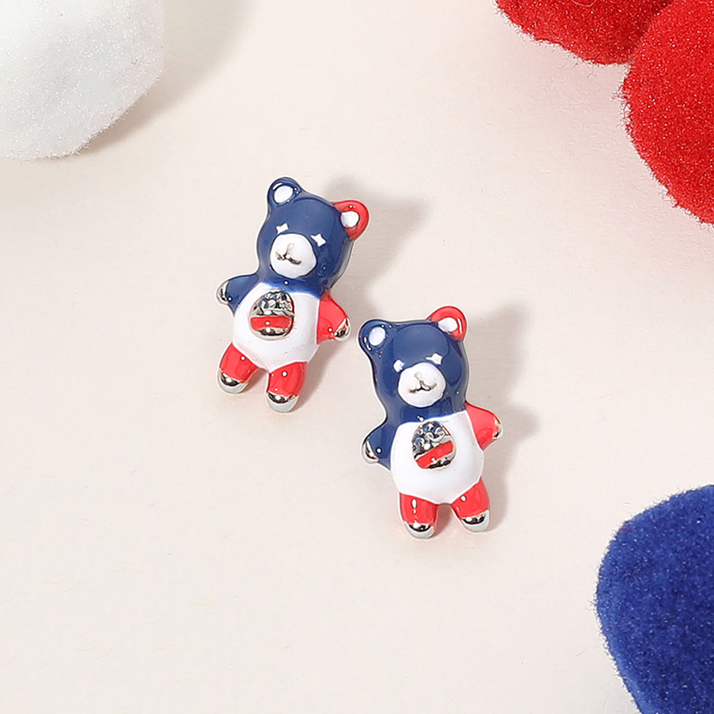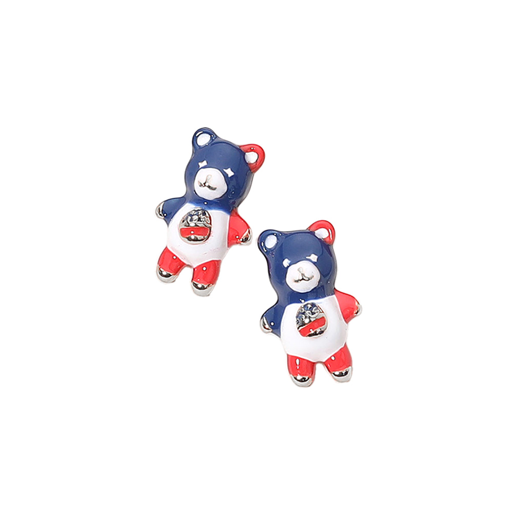 Enamel American USA Flag Colored Teddy Bear Stud Earrings