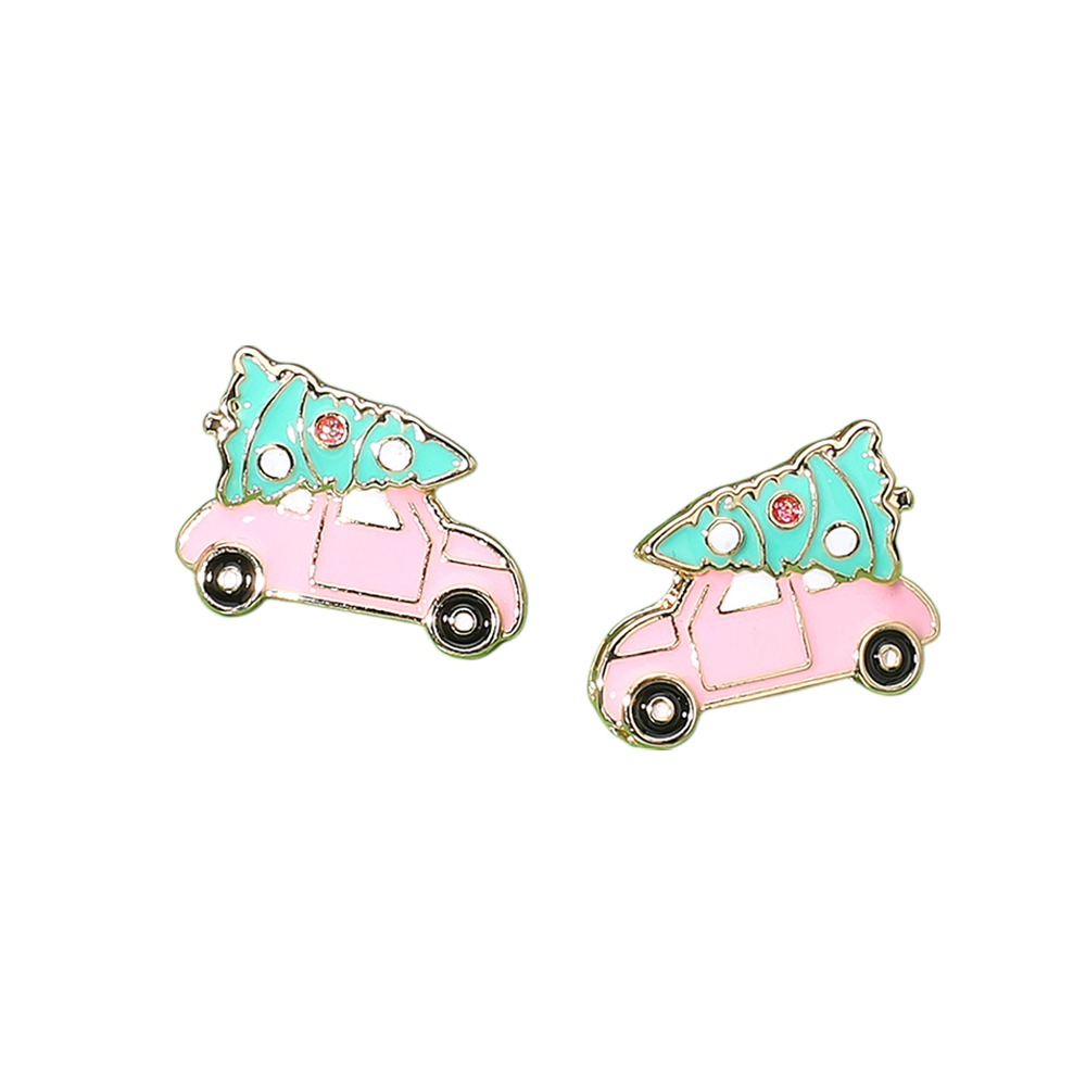 Details • Size : 0.8" X 0.6" • Post Back • Add holiday cheer with these Christmas car stud earrings featuring a festive tree design. Perfect for seasonal outfits, gifting, and creating a playful holiday look that spreads joy and celebration. • Lead and Nickel Compliant