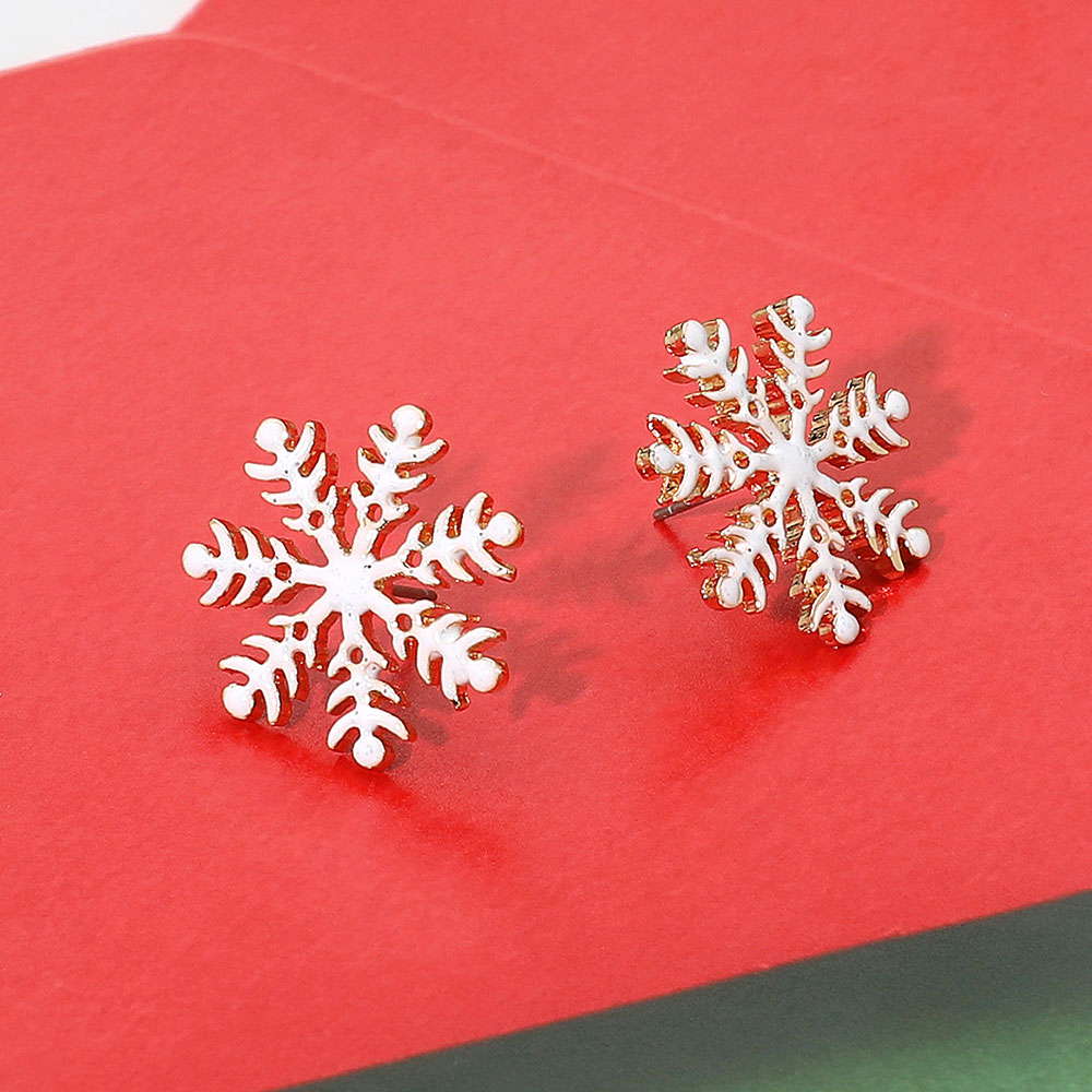 Details • Size : 0.9" X 0.9" • Post Back • Add a festive sparkle to your winter wardrobe with these gold snowflake stud earrings. Featuring intricate snowflake details, they bring seasonal charm and warmth to holiday outfits, making them ideal for parties, gifts, or everyday winter glam. • Lead and Nickel Compliant
