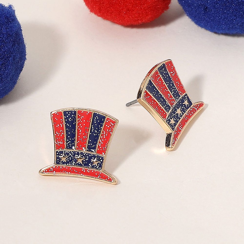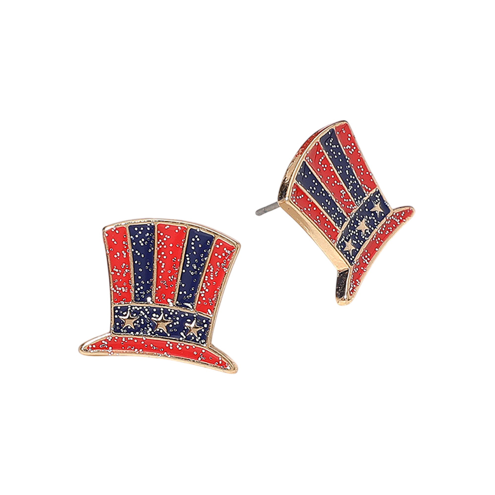 Enamel Sparkly American USA Flag Patriotic Top Hat Stud Earrings