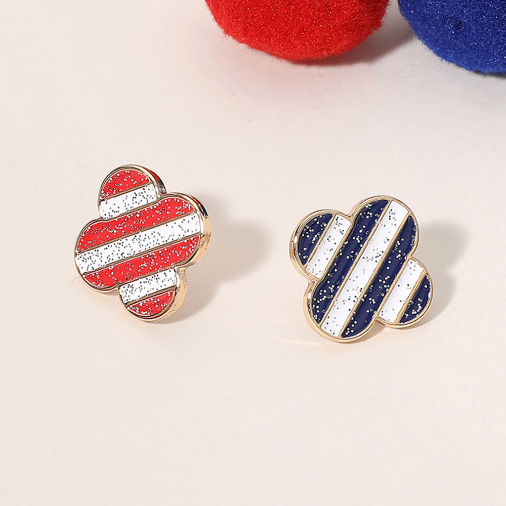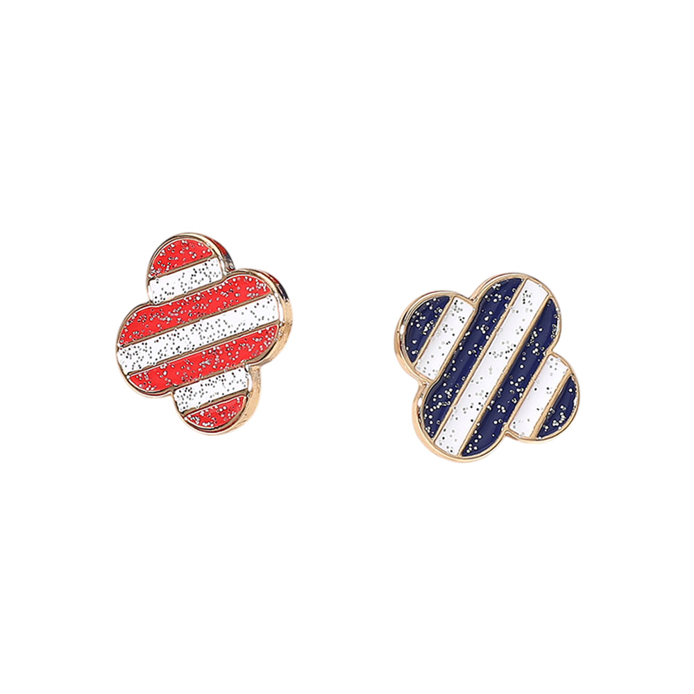 Enamel Sparkly American USA Flag Quatrefoil Stud Earrings