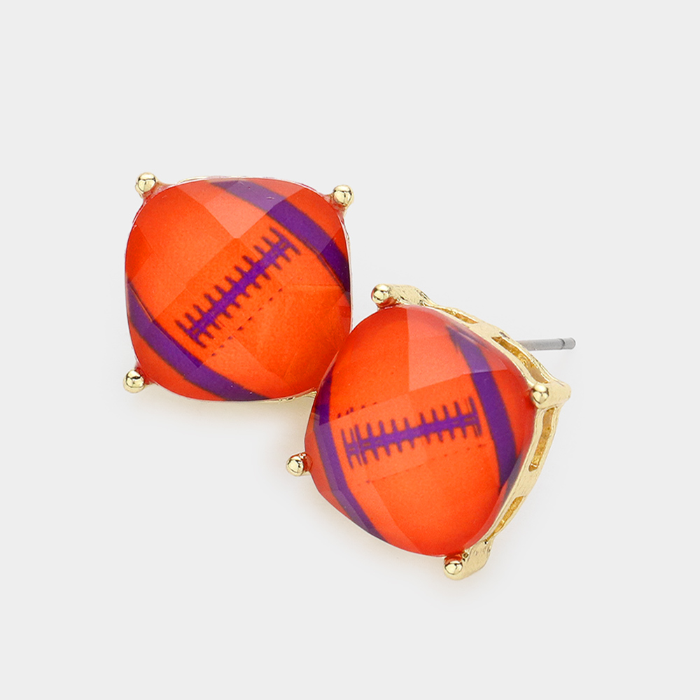 Details • Size : 0.6" X 0.6" • Post Back • Show off your team spirit with these red and black plaid football stud earrings. Featuring a bold checkered design in a faceted finish, they’re the perfect sporty accessory for tailgates, school spirit days, or casual fanwear. • Lead and Nickel Compliant