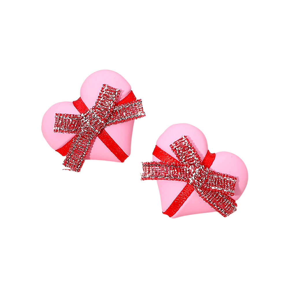 • Add playful charm to any outfit with these adorable heart-shaped stud earrings, topped with a glittery ribbon design. Perfect for casual looks, themed events, or gifting, they bring a fun and cheerful accent that brightens up your accessory collection with sweet, eye-catching detail.