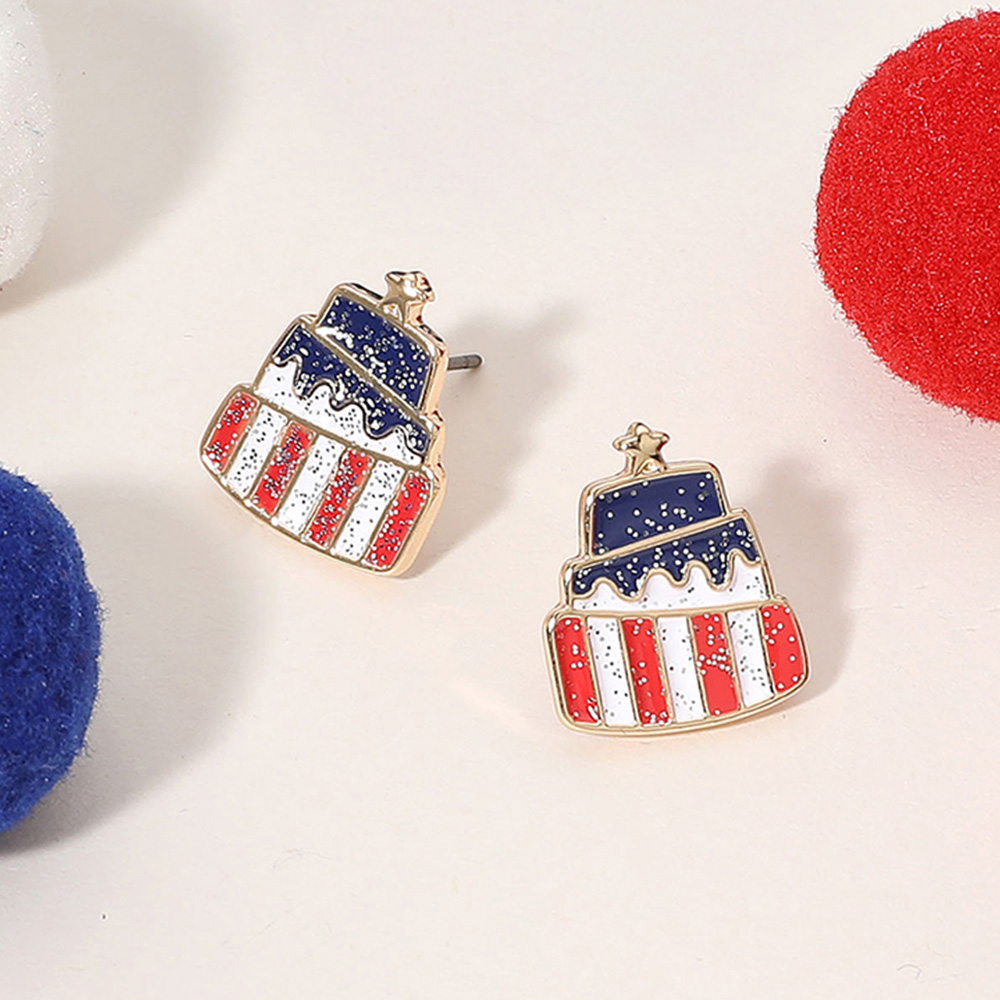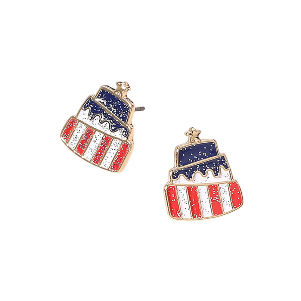 Glittered Enamel American USA Flag Cake Stud Earrings