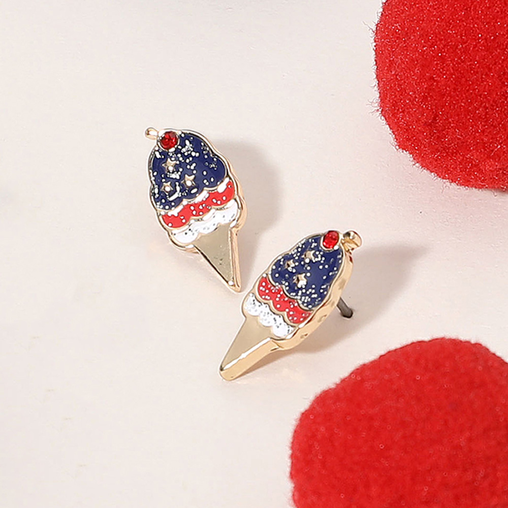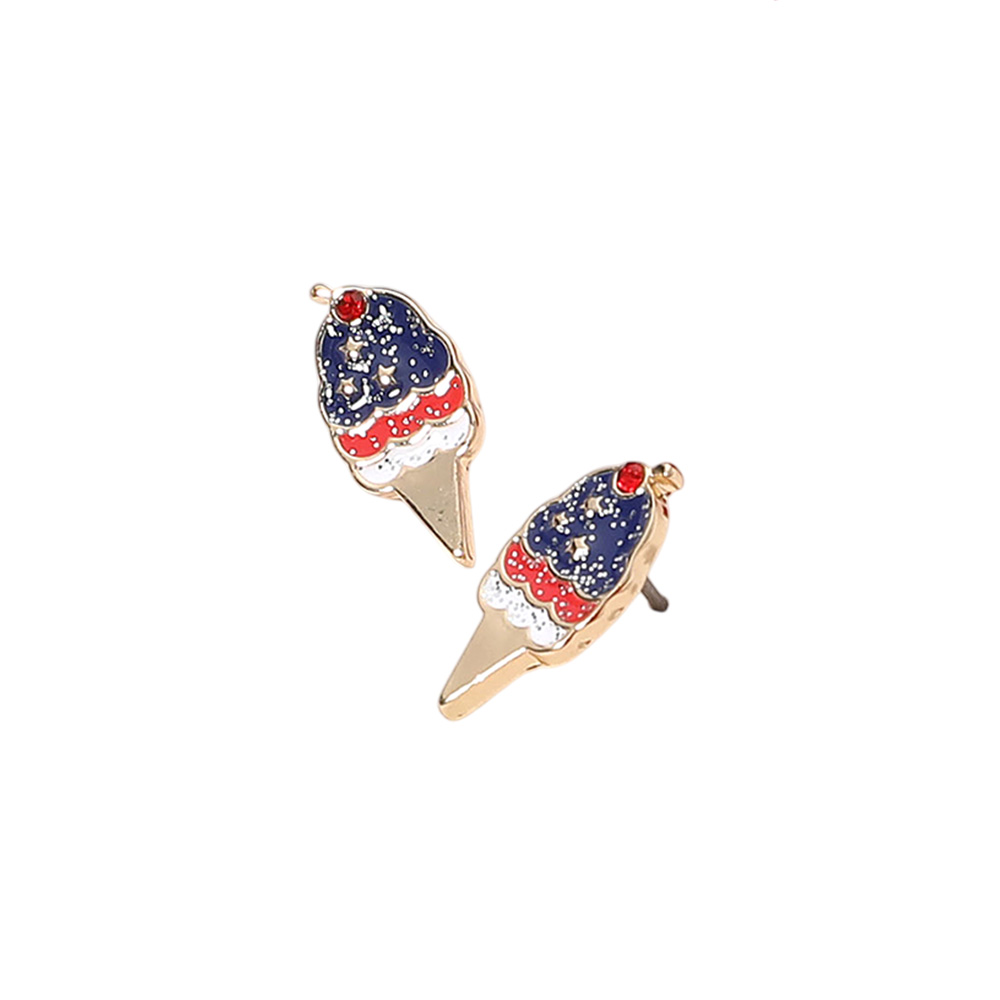 Glittered Enamel American USA Flag Ice Cream Stud Earrings