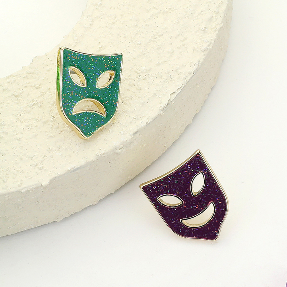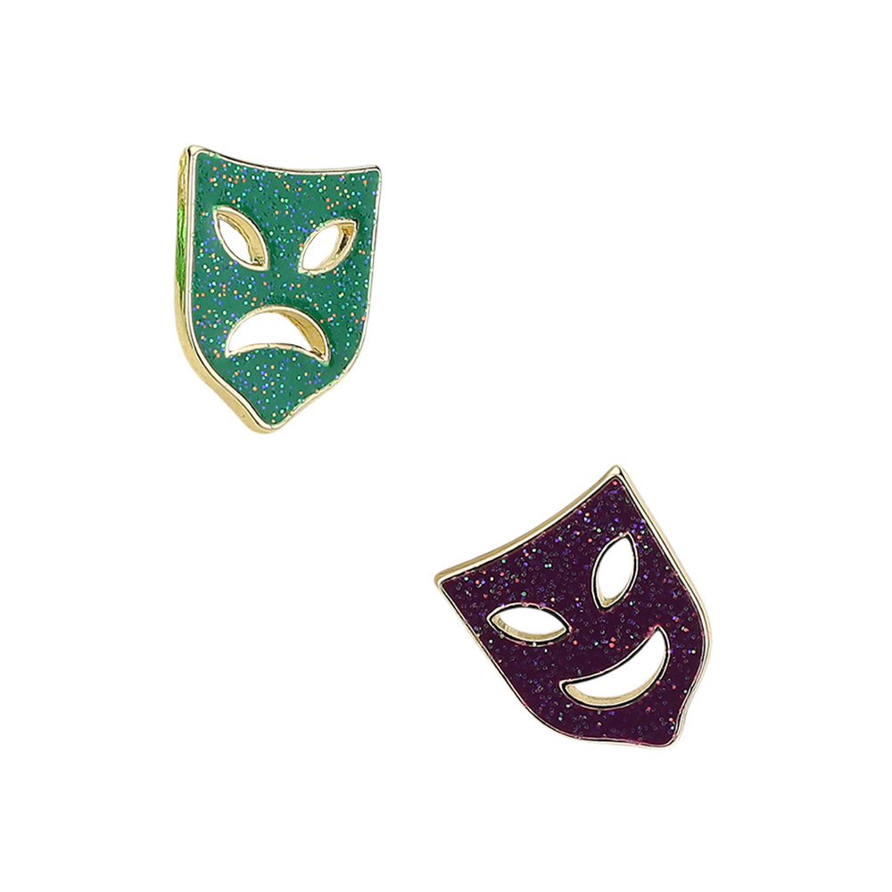 Glittered Enamel Mardi Gras Mask Stud Earrings