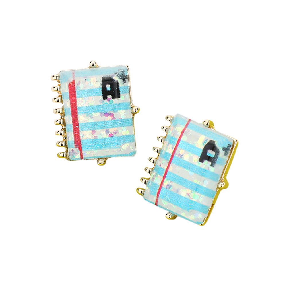 Glittered Notebook Hypoallergenic Stud Earrings